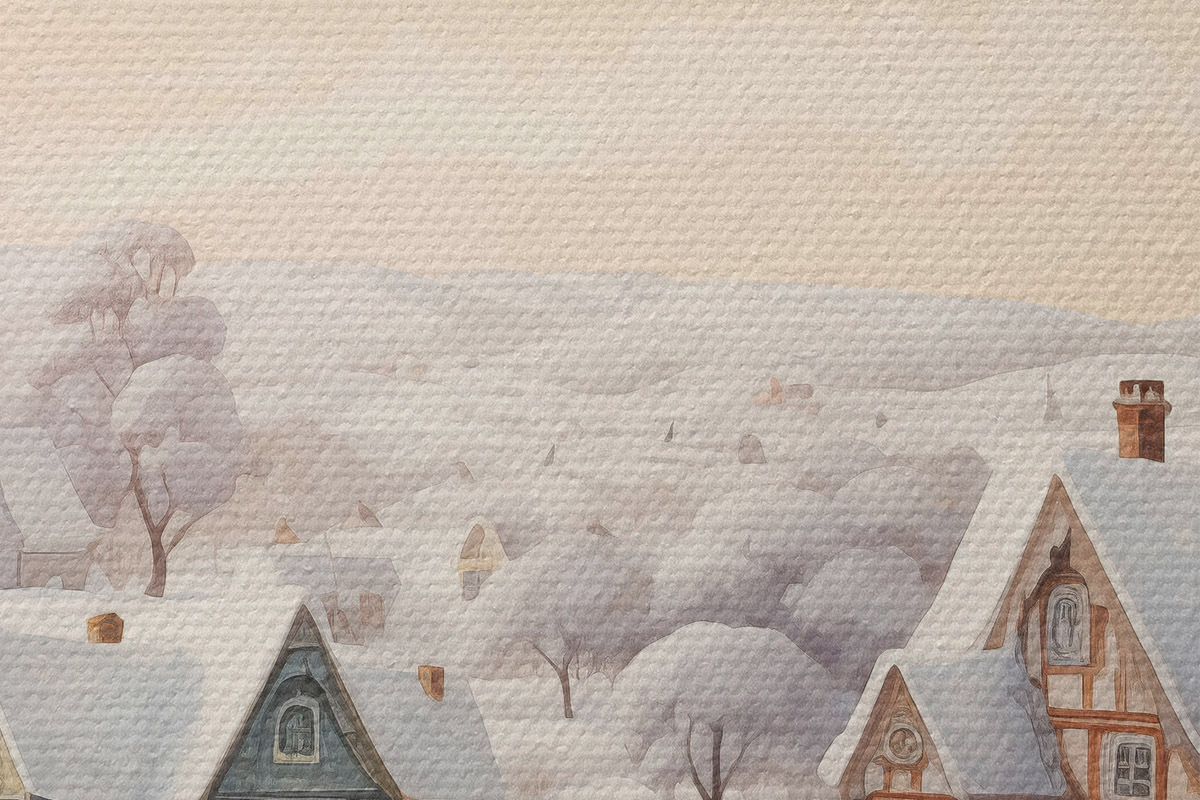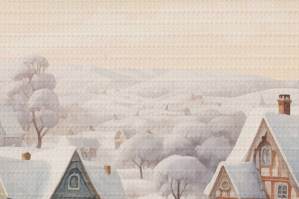 Okrągły obraz Piękny zimowy krajobraz z wioską, drzewami, domami, akwarela Nr r41379
