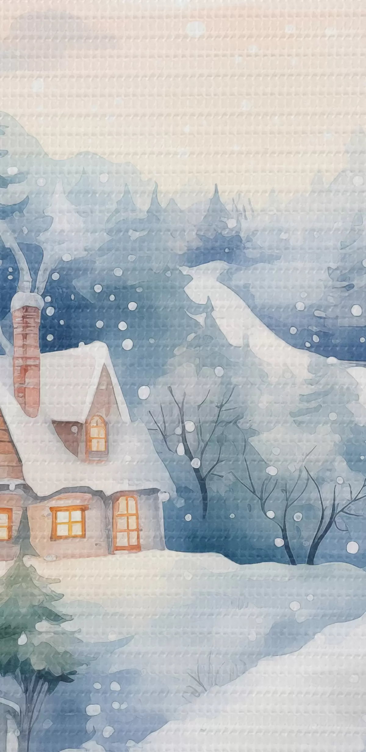 Okrągłe obrazy Akwarela zimowy krajobraz, las sosnowy, domy r41387