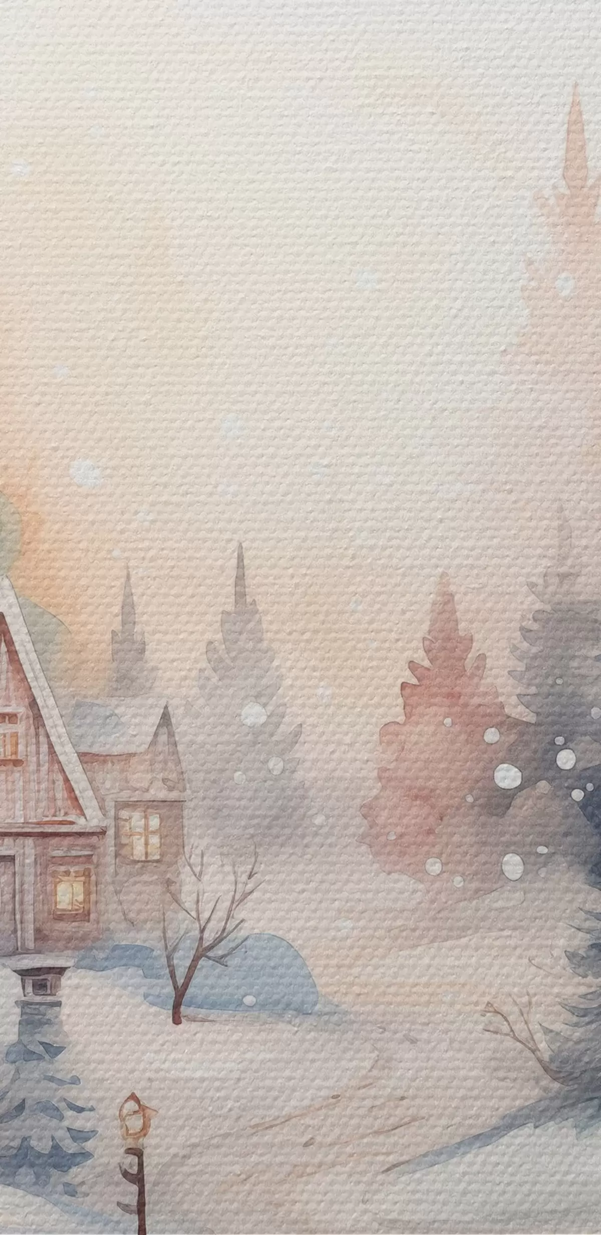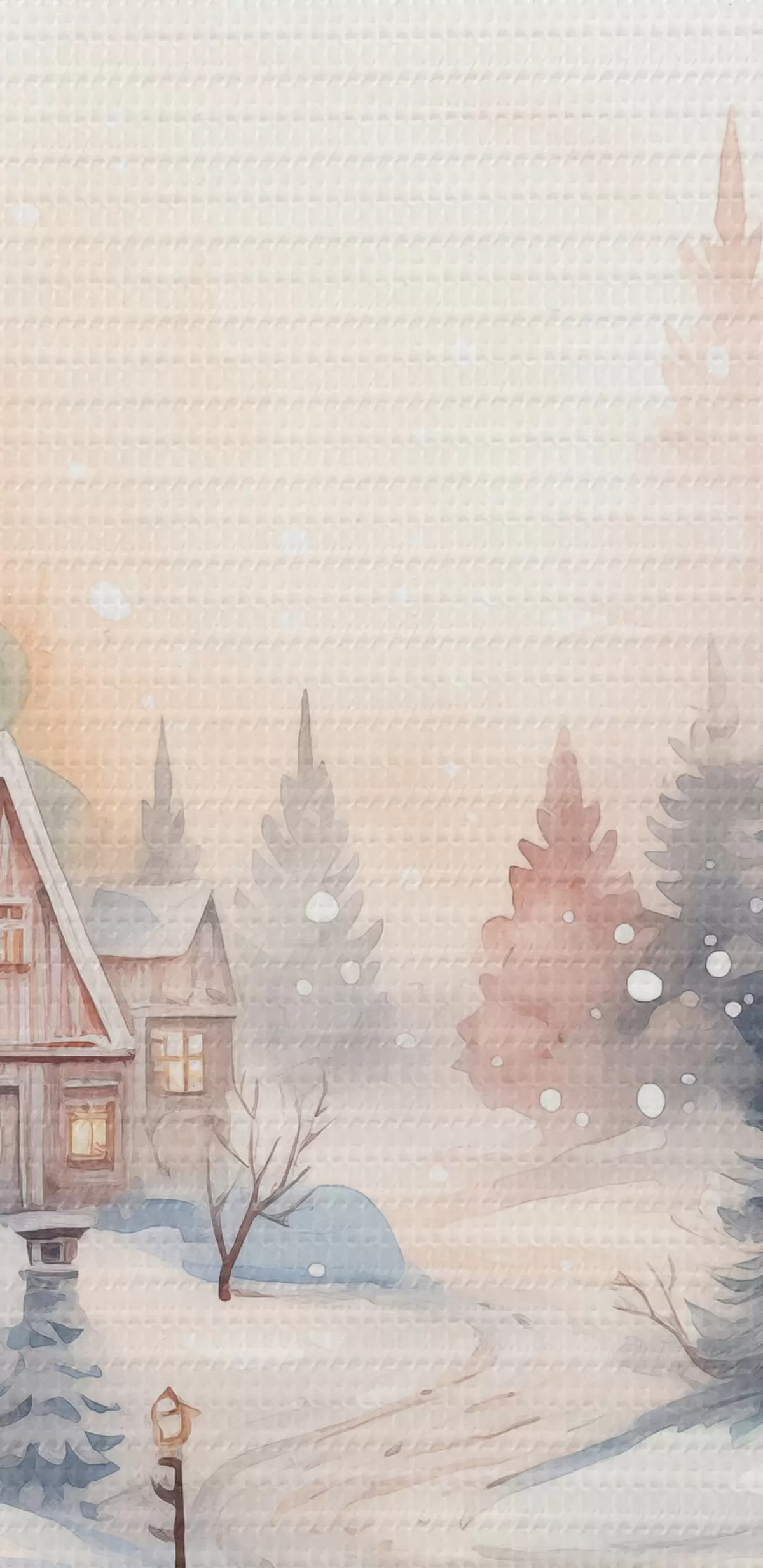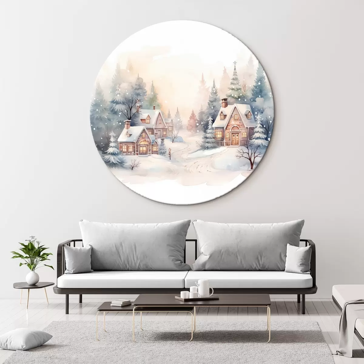 Okrągły obraz Zimowy krajobraz, sosnowy las, piękne domy, akwarela, susnet Nr r41390