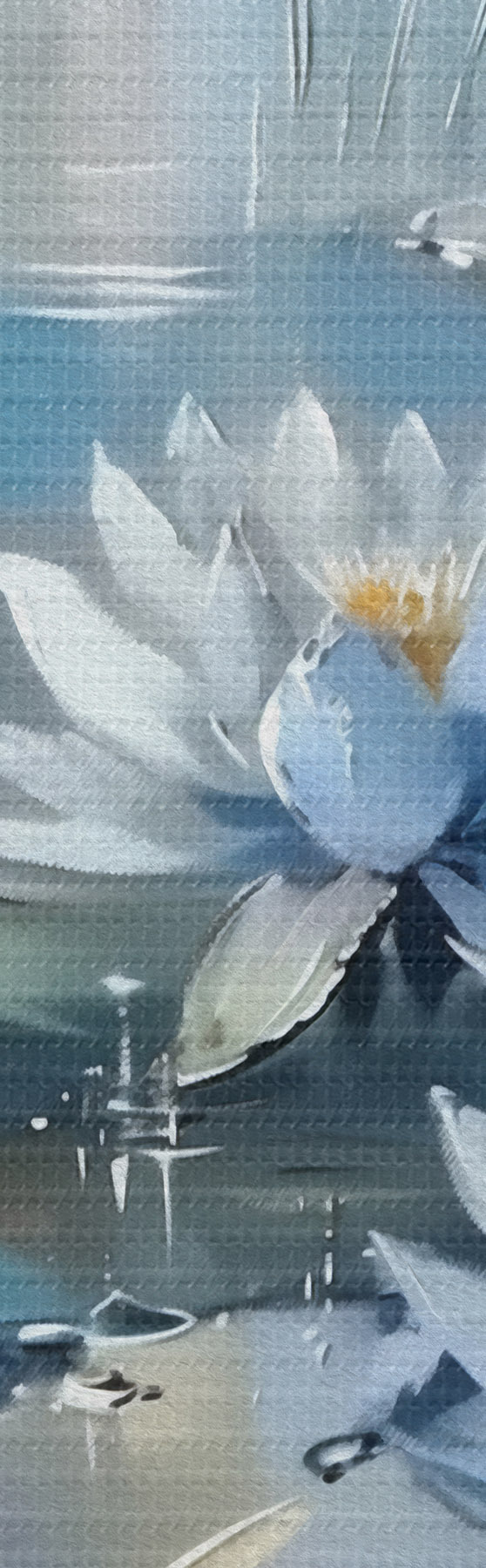 Drobny splot nici na tym płótnie przypomina powierzchnię profesjonalnych płócien artystycznych.