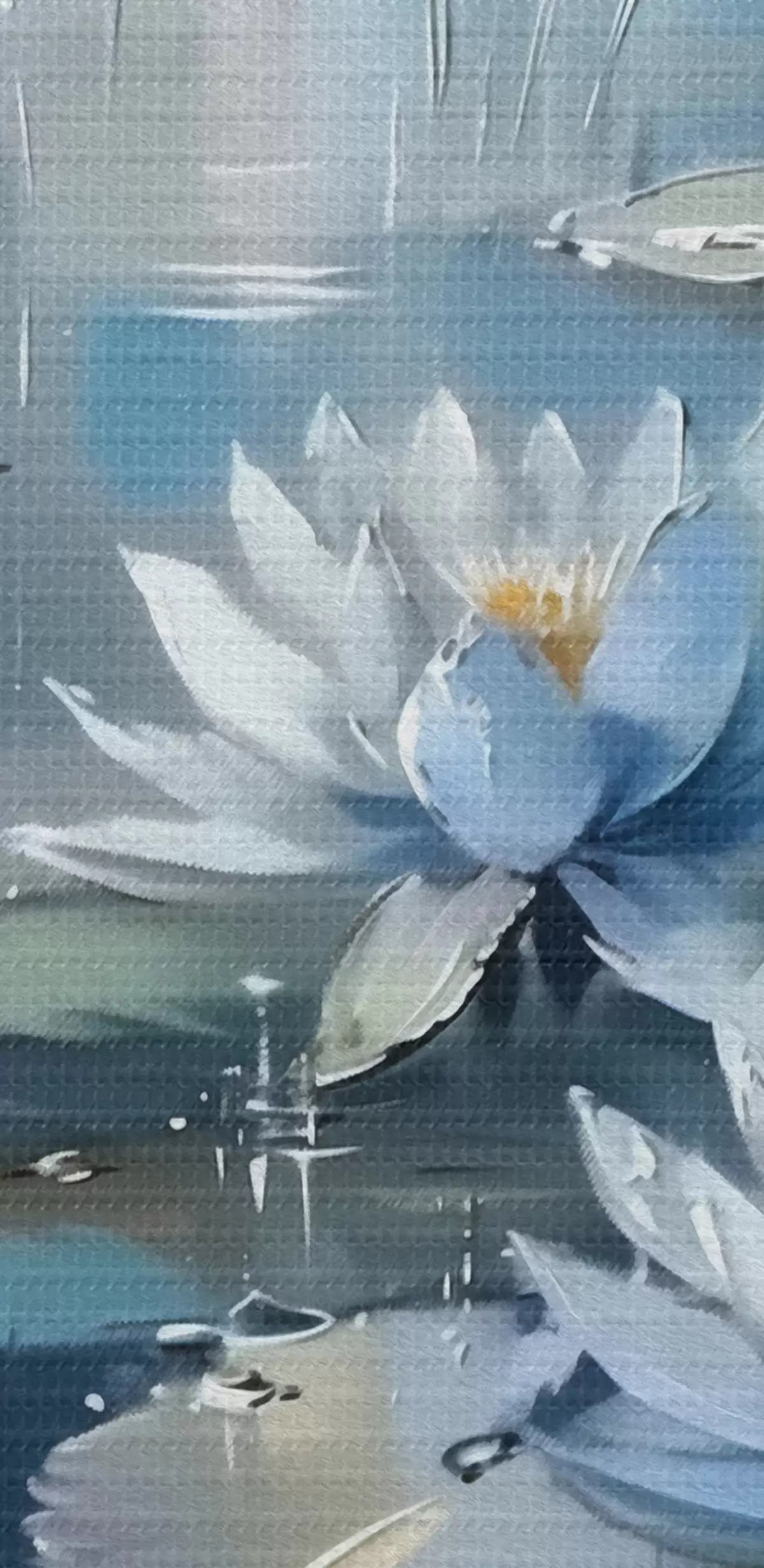 Drobny splot nici na tym płótnie przypomina powierzchnię profesjonalnych płócien artystycznych.