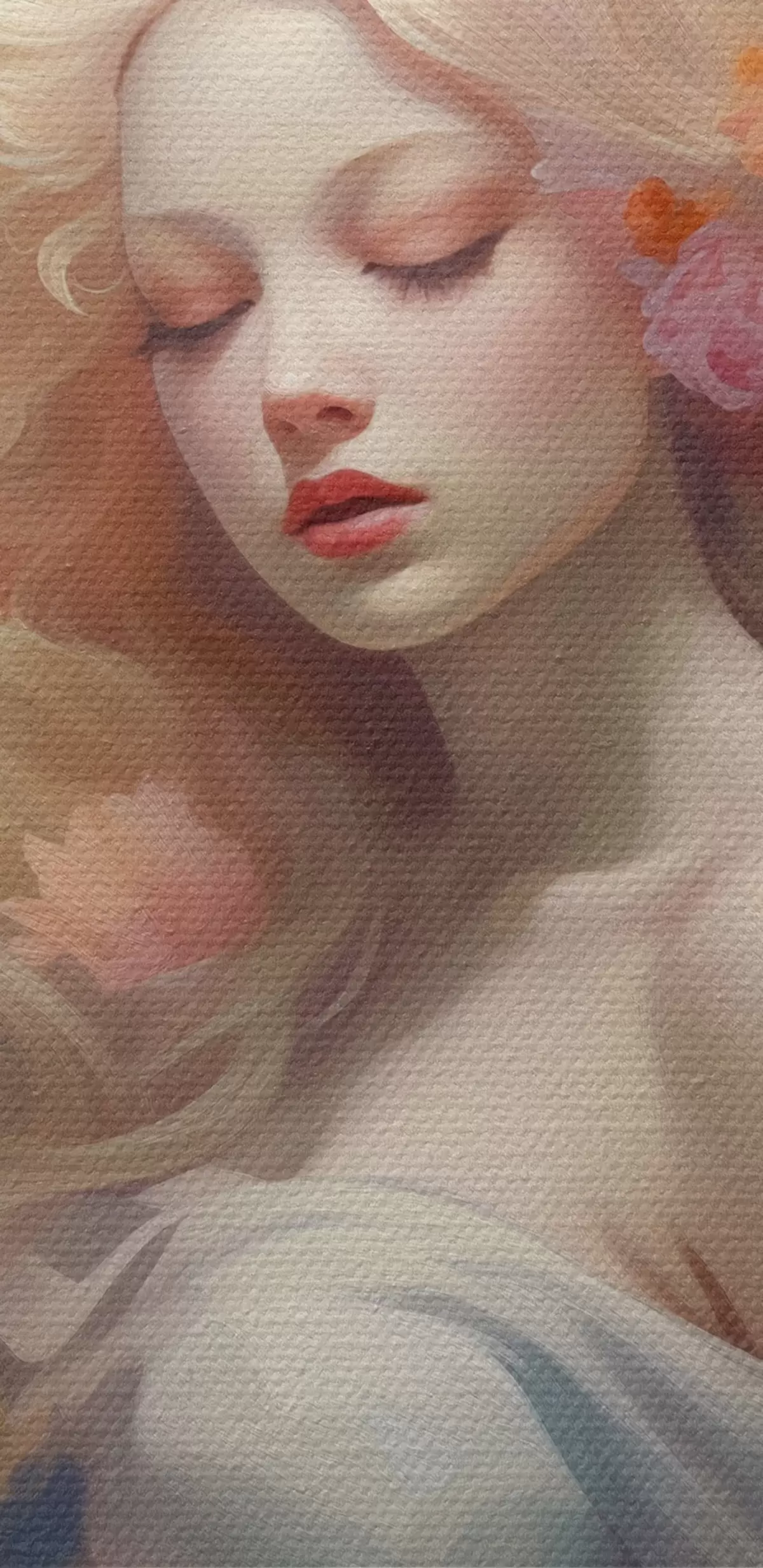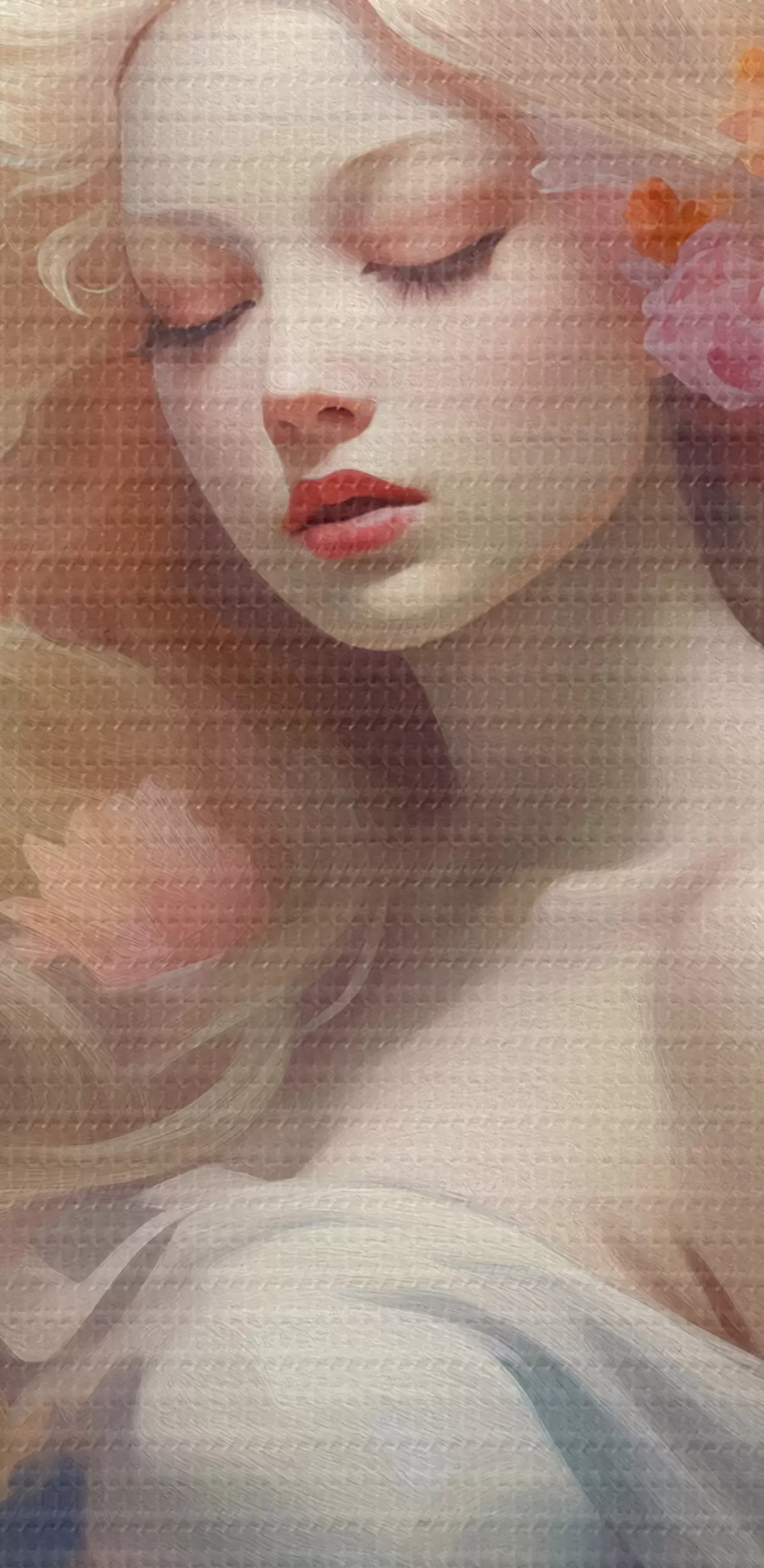 Drobny splot nici na tym płótnie przypomina powierzchnię profesjonalnych płócien artystycznych.