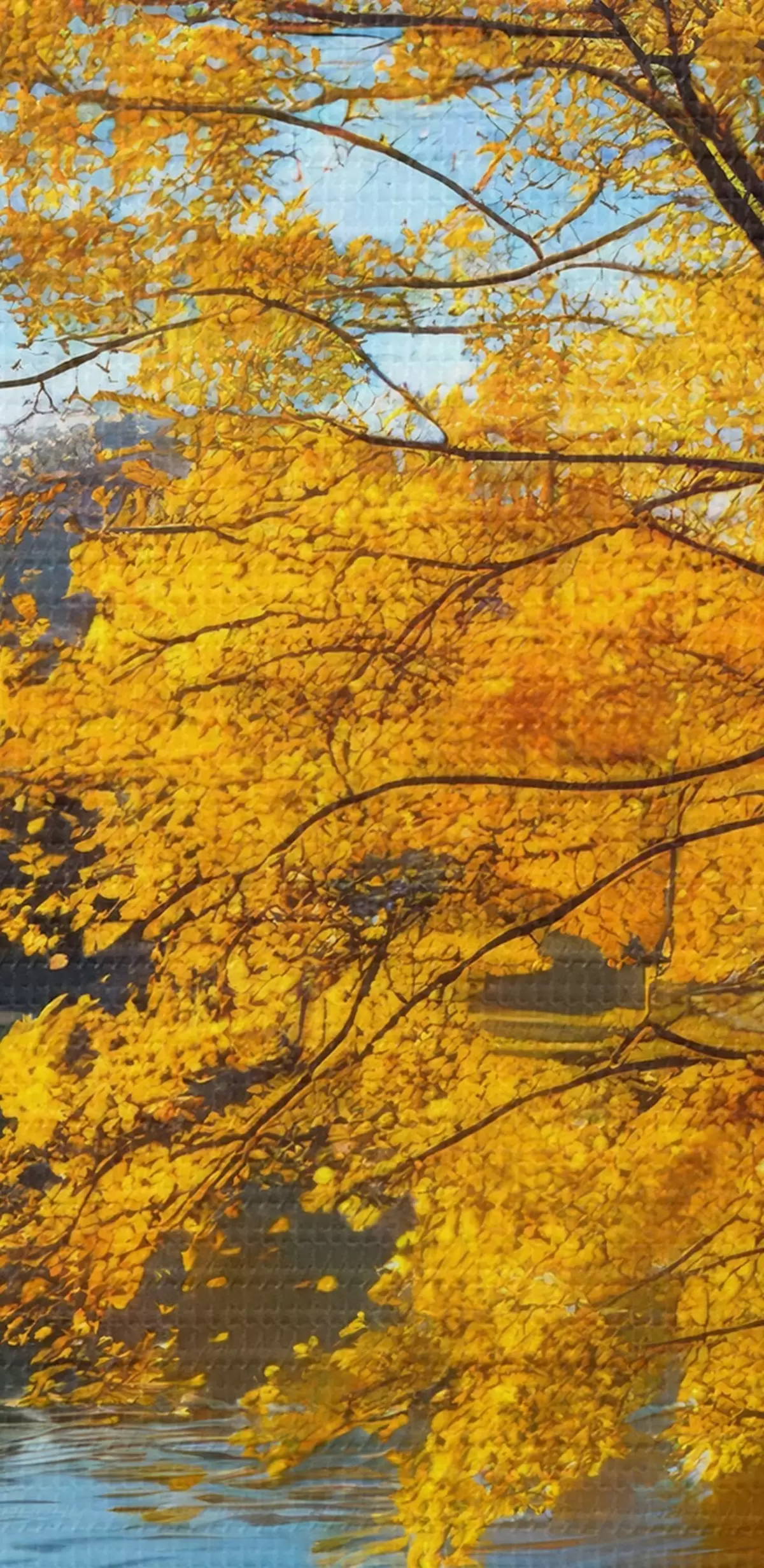 Okrągły obraz jesienny krajobraz nad jeziorem Nr r41407