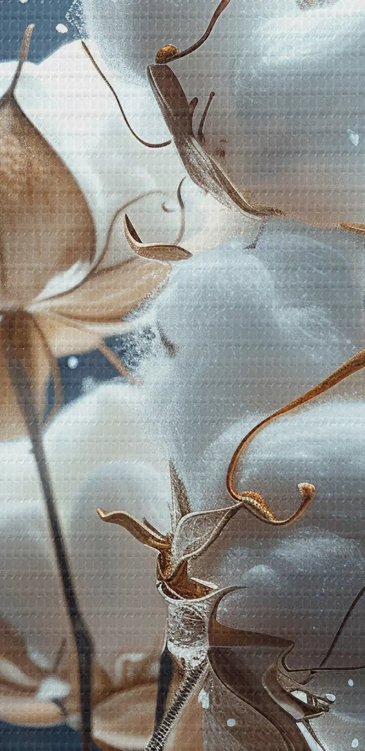 Do zamówienia dostępne są trzy rodzaje materiału: Economic Canvas - gęsty i trwały materiał do druku cyfrowego, identyczny z płótnem malarskim, wodoodporna powierzchnia, realistyczne odwzorowanie szczegółów, materiał średnioziarnisty. Premium Canvas - tekstura przypominająca płótno malarskie (przeplatane drobne nitki). Miękka, szczegółowa reprodukcja obrazu na matowej powierzchni. Eco-Premium - wysokiej jakości tkanina w 100% bawełniana. Dzięki naturalnym włóknom bawełnianym materiał jest trwały i odporny na zużycie. Doskonałe odwzorowanie kolorów i szczegółów.