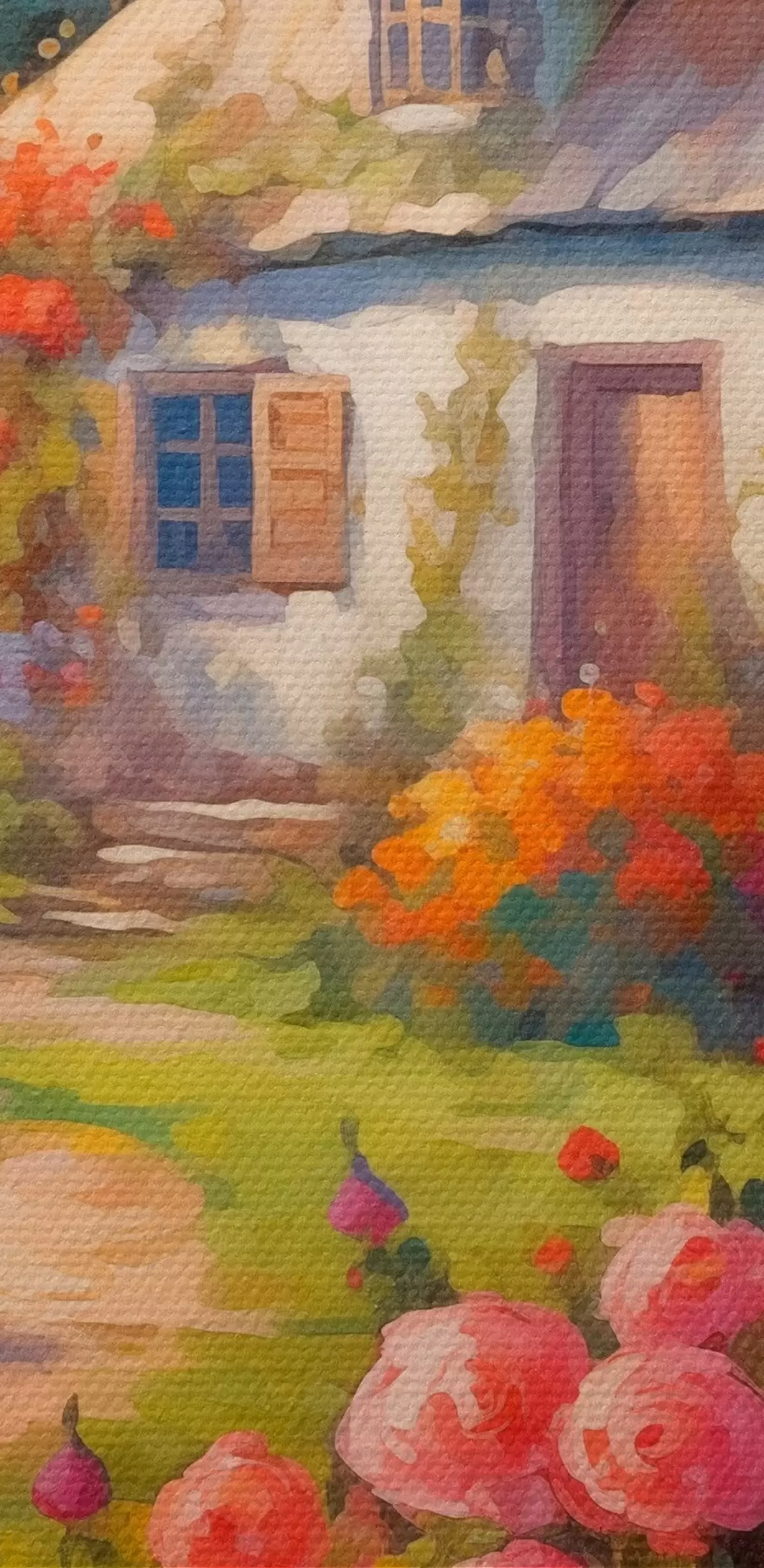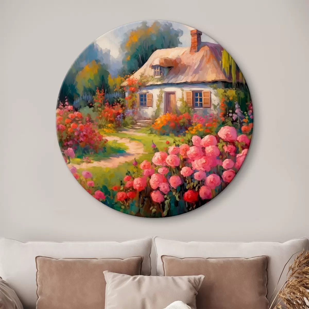 Okrągły obraz Dom w ogrodzie różanym Nr r41491