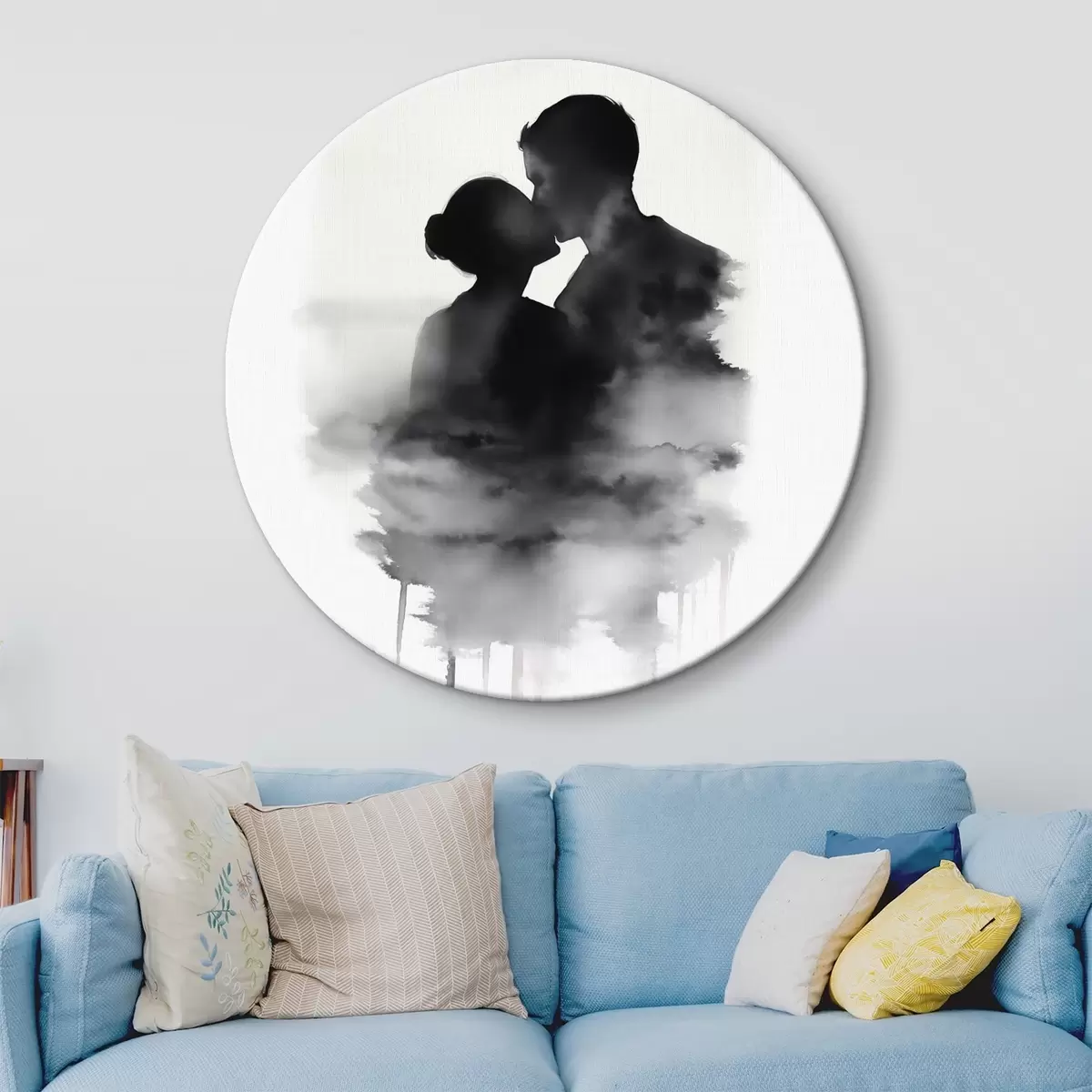 Okrągły obraz Sylwetka pary w czarno-białej technice akwareli Nr r41496