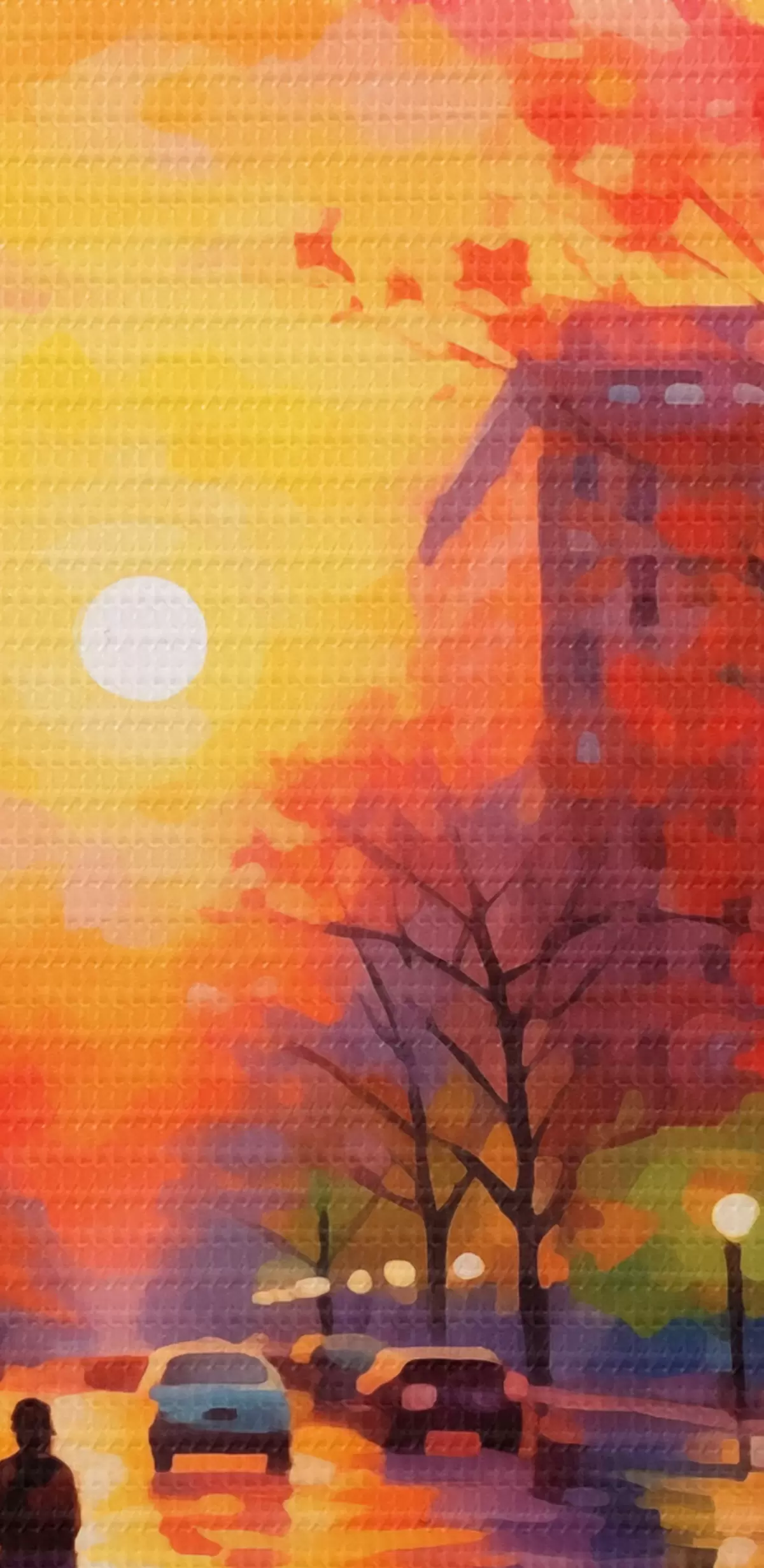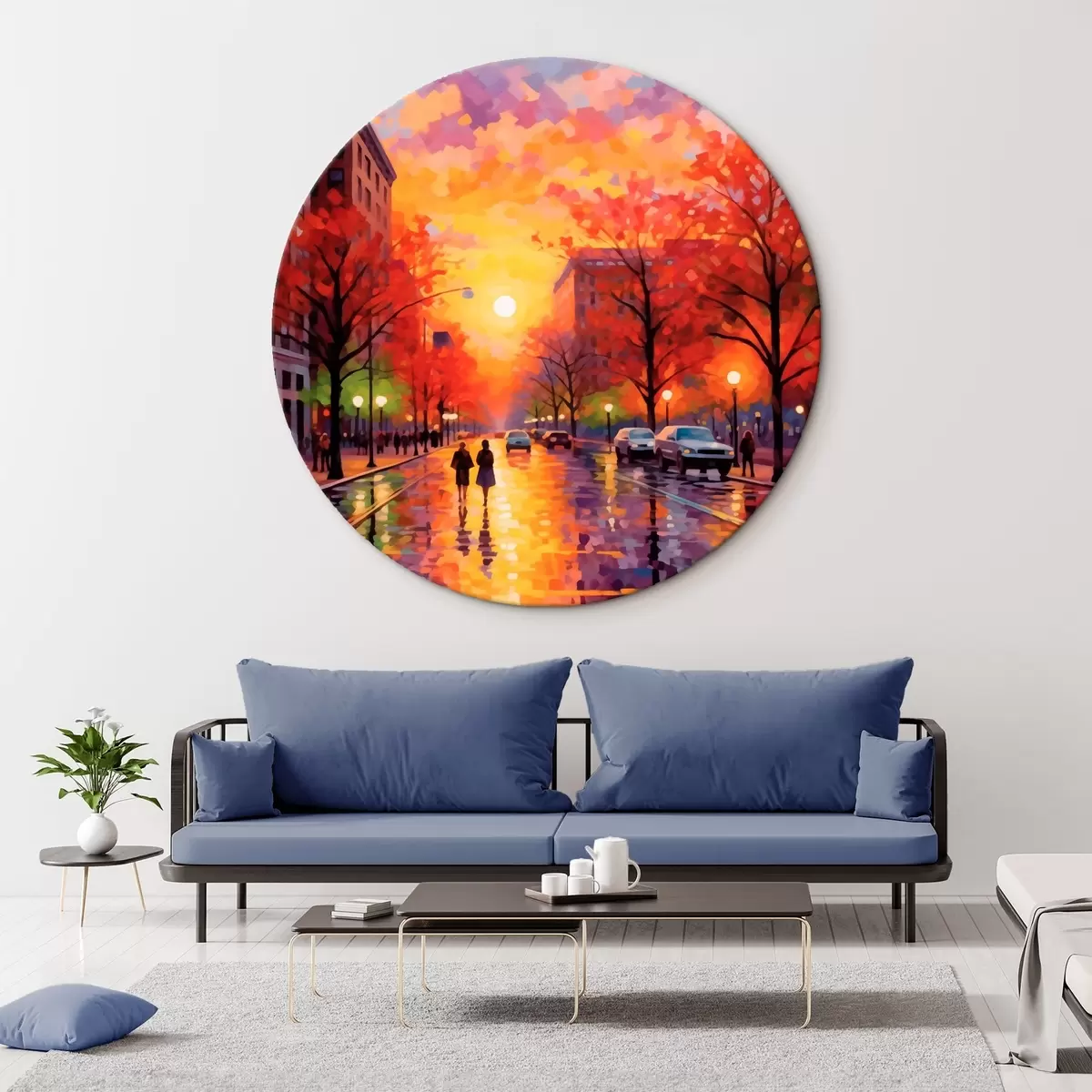 Okrągły obraz Jesienny wieczór w mieście Nr r41499
