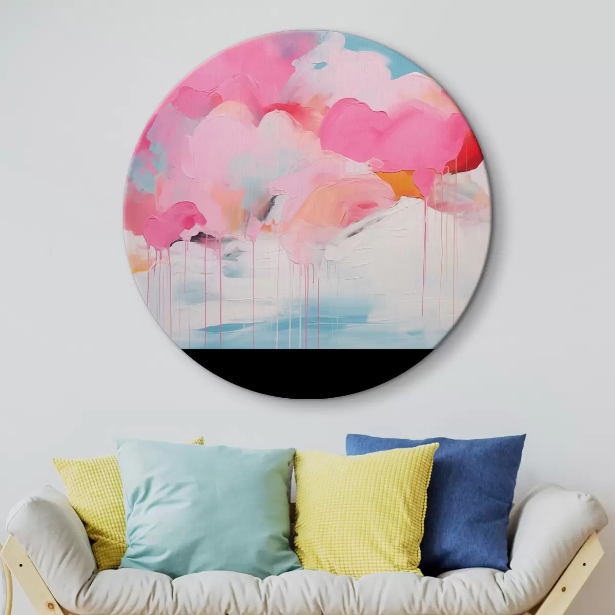 Okrągły obraz Różowe chmury, jasna abstrakcja z gładkimi liniami Nr r41502