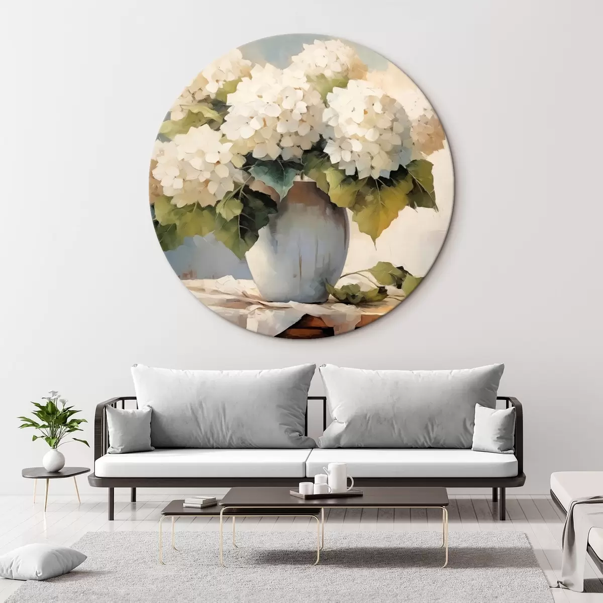 Okrągły obraz Wazon z kwiatami na stole Nr r41761