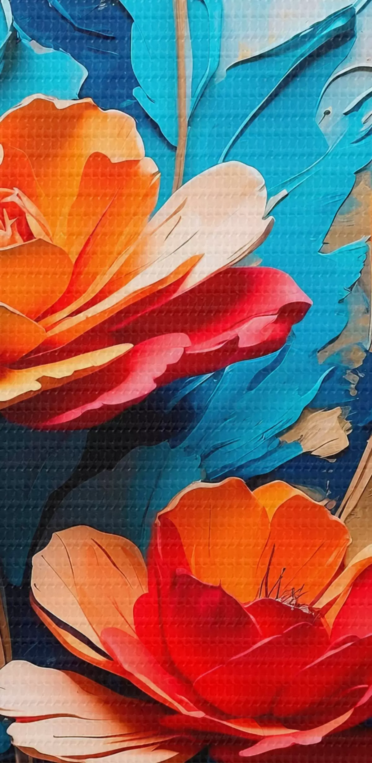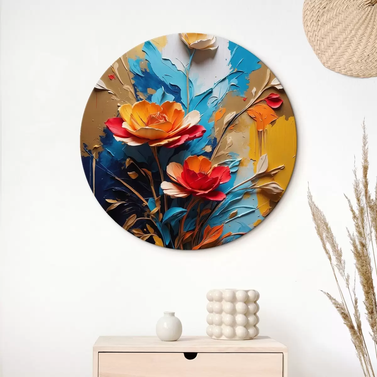 Okrągły obraz Kwiaty na abstrakcyjnym wielokolorowym tle w stylu malarstwa olejnego Nr r41769
