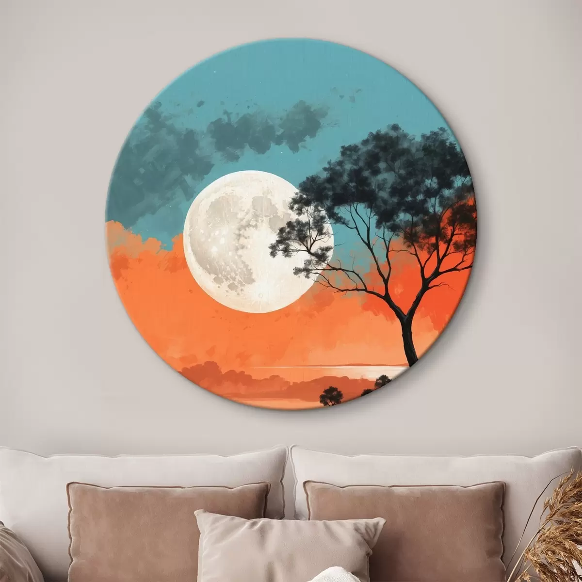 Okrągły obraz Drzewo na środku jeziora na tle księżyca Nr r41775