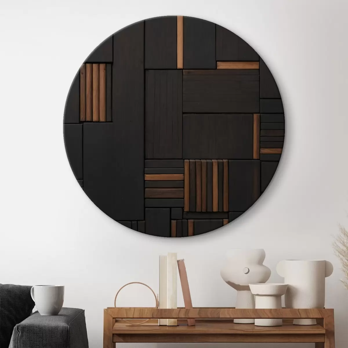 Okrągły obraz Ściana z wizerunkiem drewnianych płytek Nr r41782