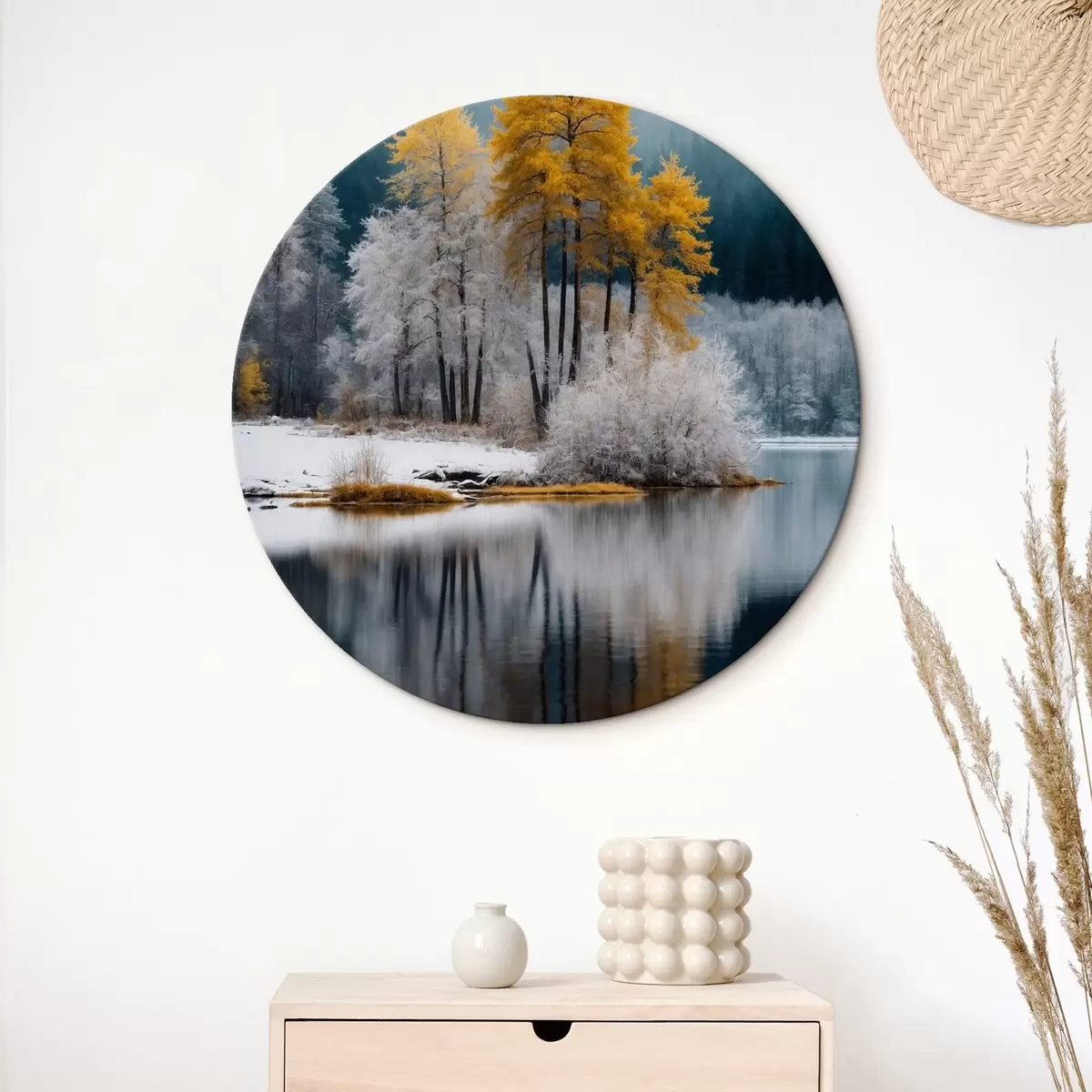 Okrągły obraz Zimowy las i jezioro Nr r41785