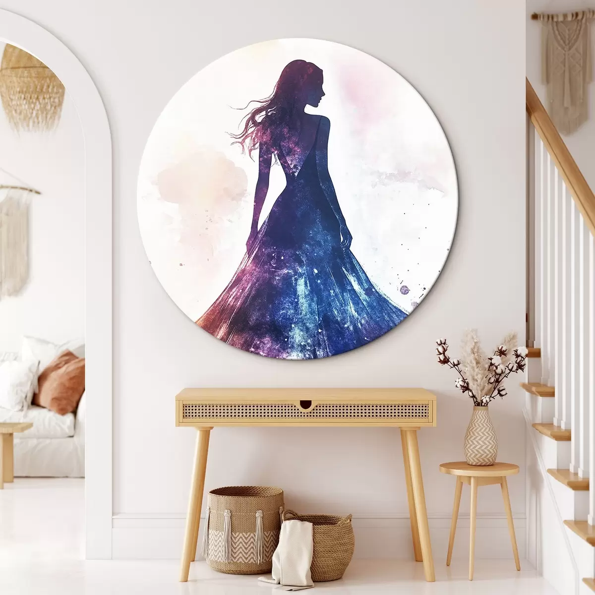 Okrągły obraz Sylwetka dziewczyny w stylu akwareli Nr r42078