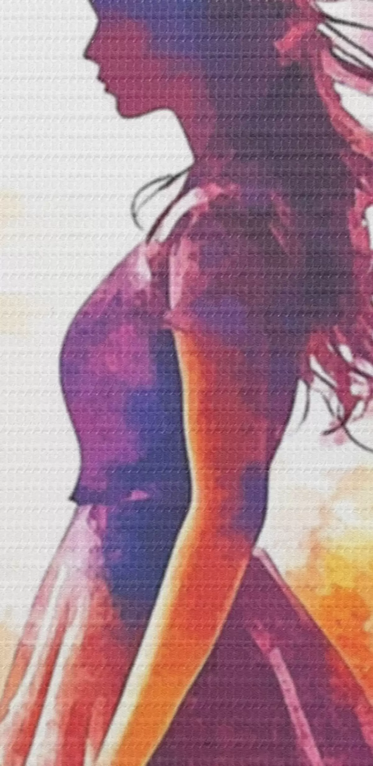 Drobny splot nici na tym płótnie przypomina powierzchnię profesjonalnych płócien artystycznych.