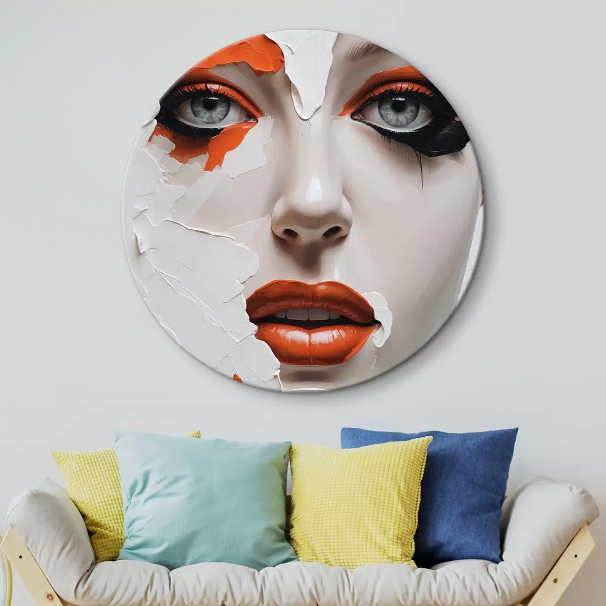 Okrągły obraz Twarz dziewczynki pomalowana białą i pomarańczową farbą Nr r42092