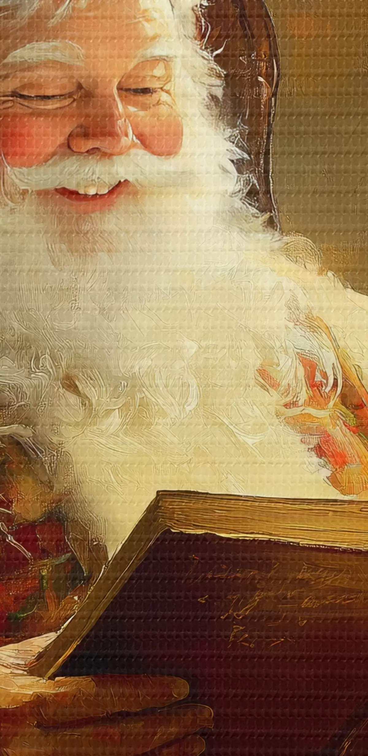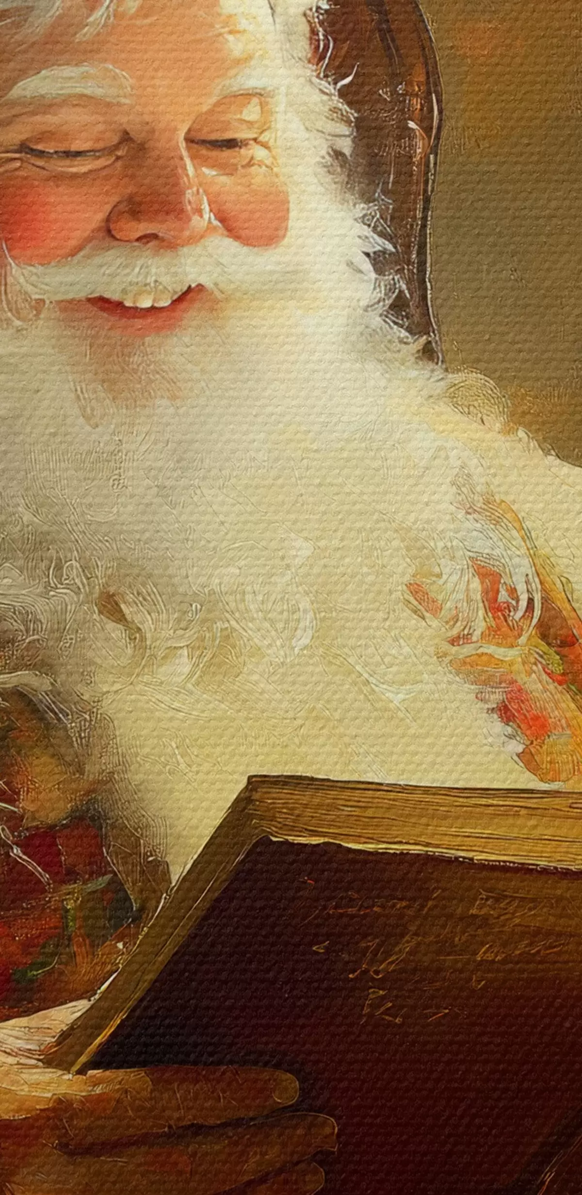Okrągły obraz Święty Mikołaj czyta książkę w pobliżu choinki Nr r42100