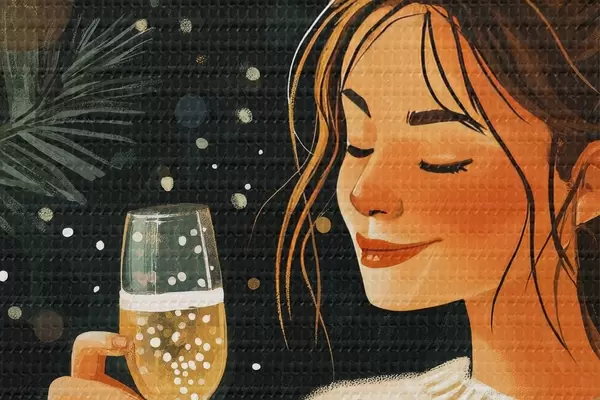 Okrągły obraz Dziewczyna z kieliszkiem szampana w Sylwestra Nr r42102