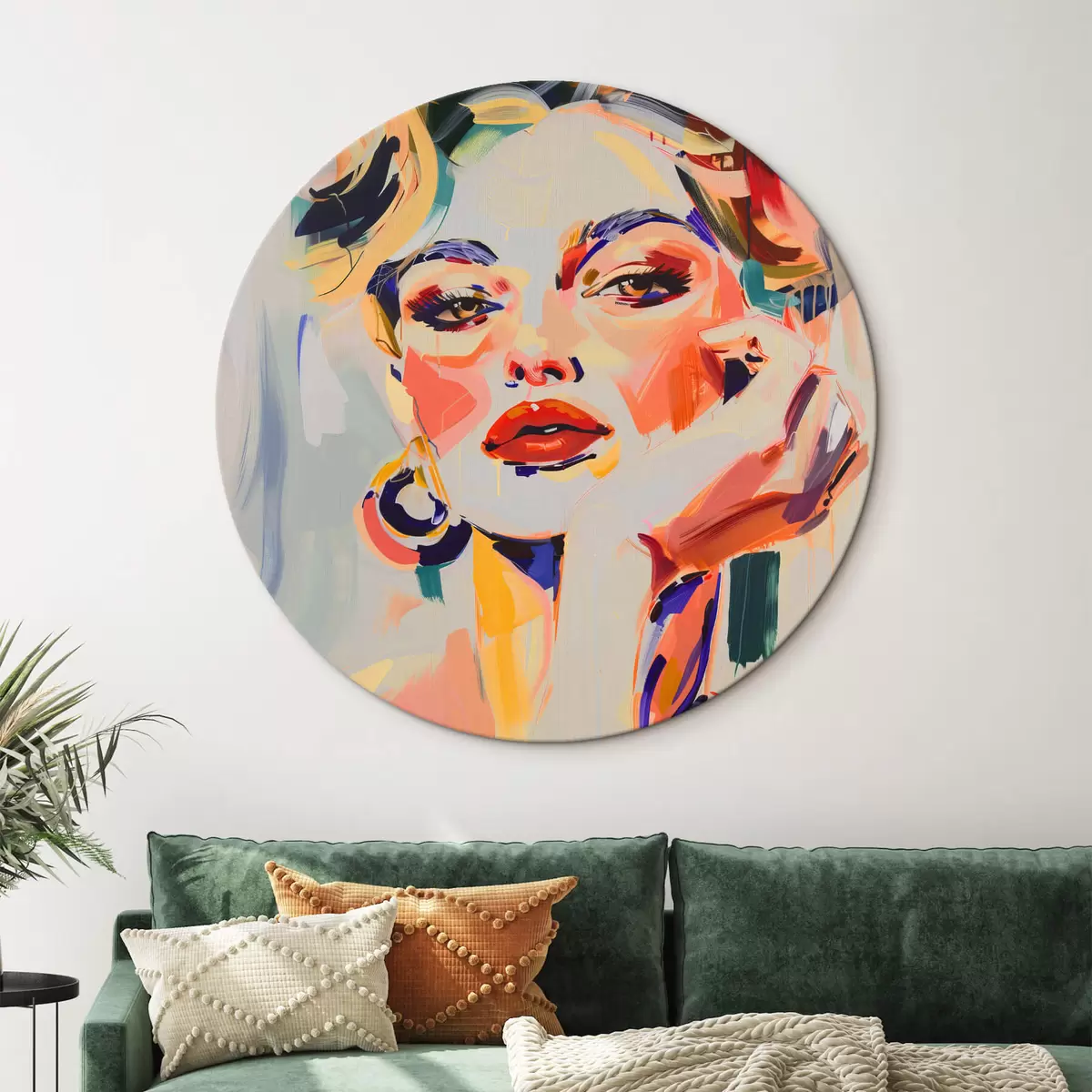 Okrągły obraz Portret kobiety w wielokolorowych pociągnięciach Nr r42111