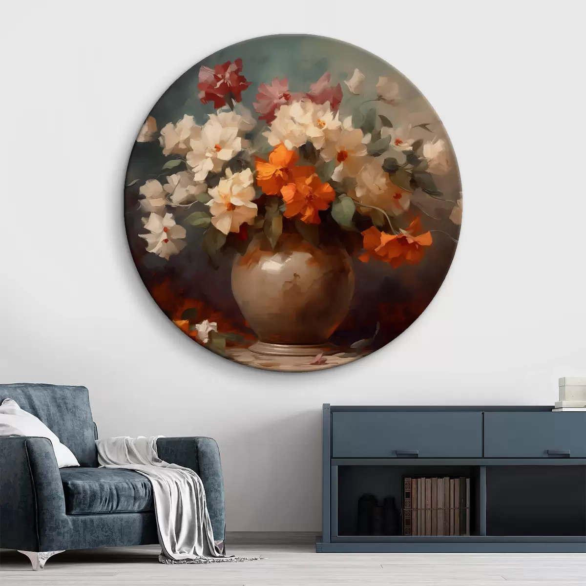 Okrągły obraz Bukiet kwiatów w wazonie Nr r42113