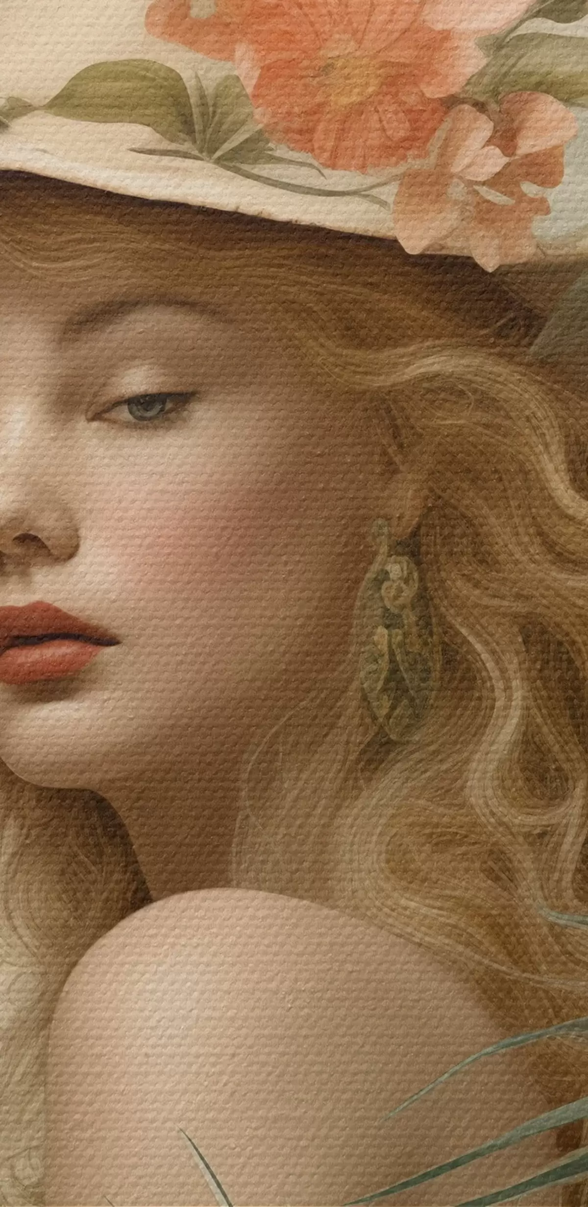 Okrągły obraz Dziewczyna w kapeluszu w tropikach w stylu vintage Nr r42115