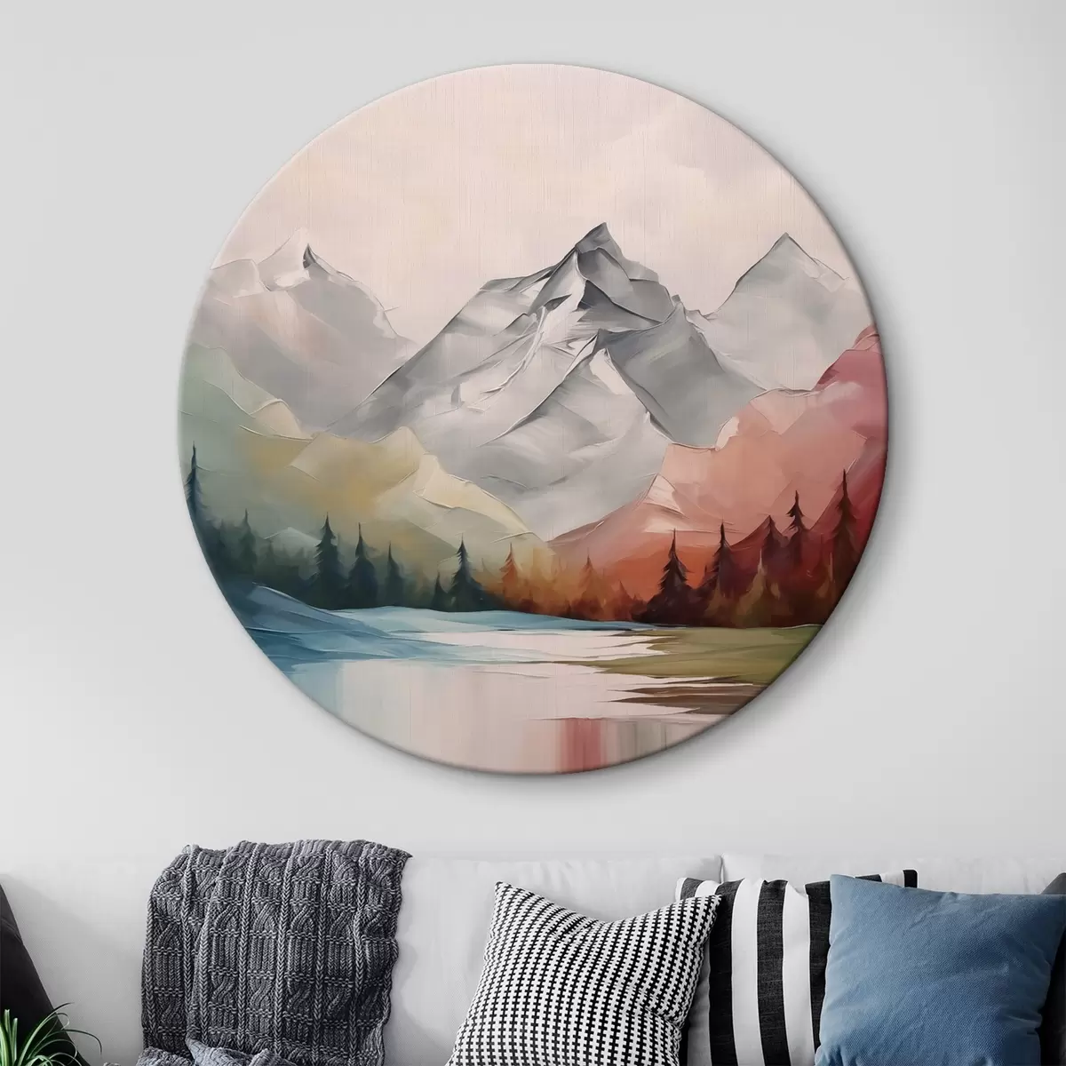 Okrągły obraz Góry i las imitacja malarstwa Nr r42128
