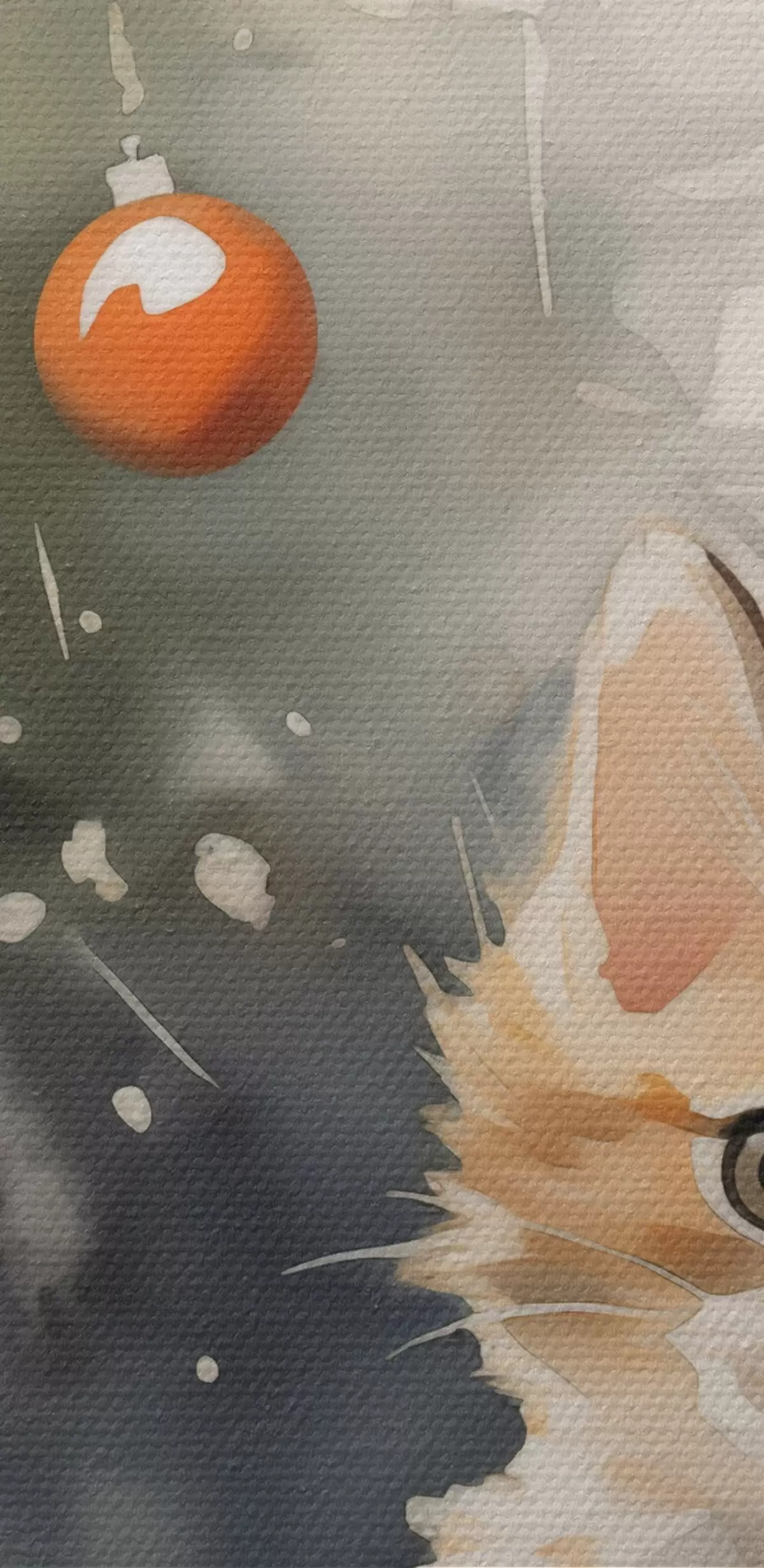 Okrągły obraz Kociak w pobliżu choinki imitacja mokrej akwareli Nr r42140