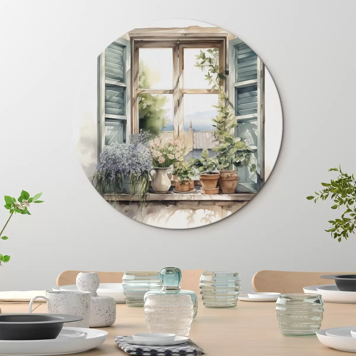 Okrągłe obrazy Roślinność na parapecie imitacja akwareli r42144