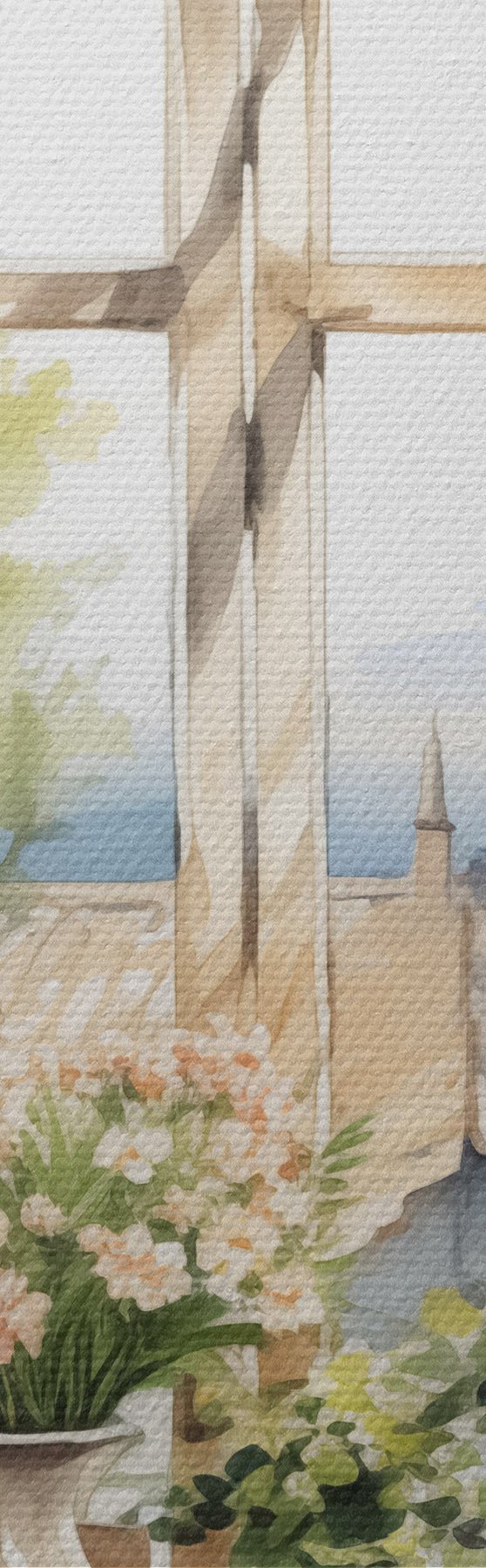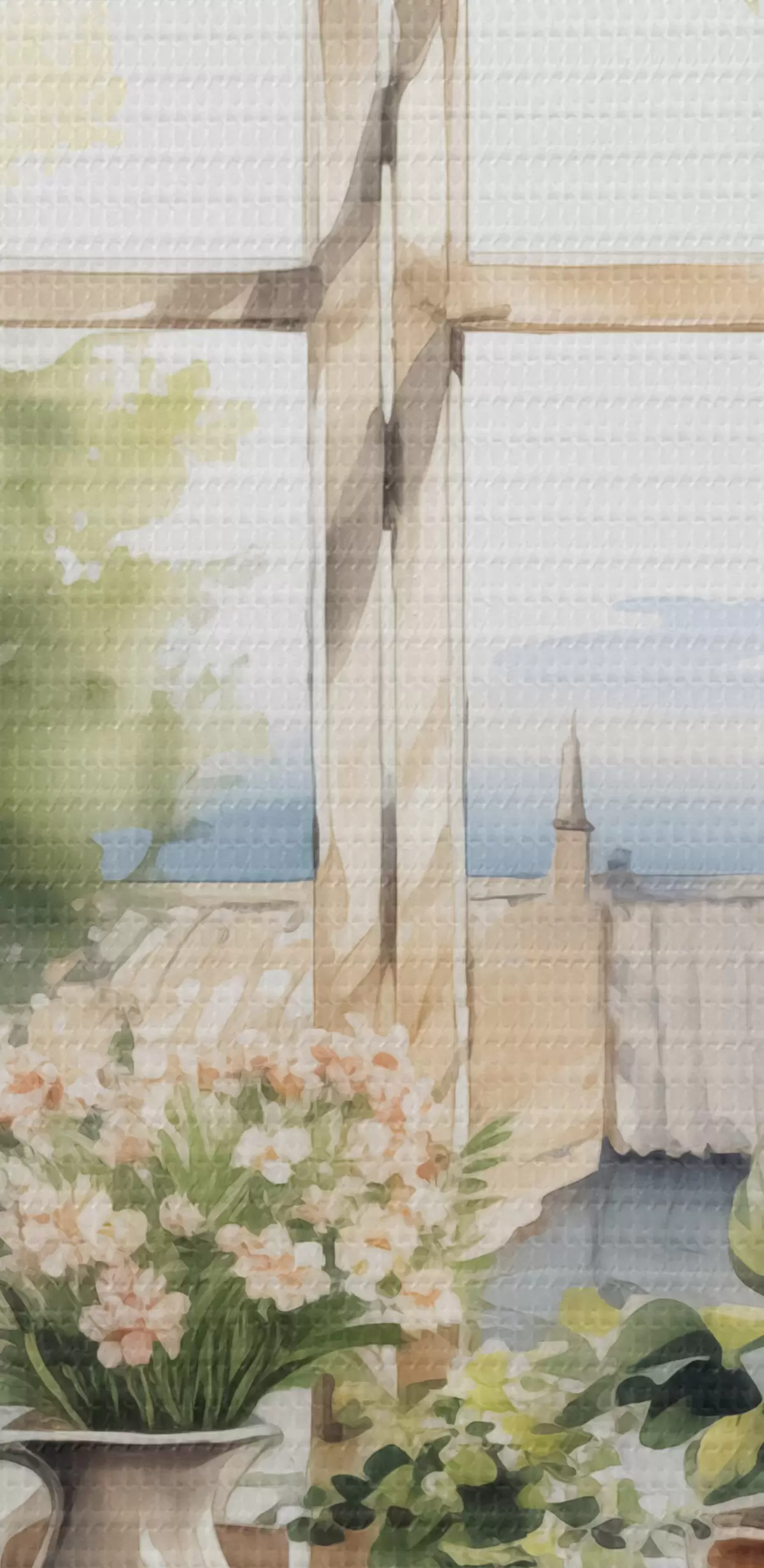 Okrągły obraz Roślinność na parapecie imitacja akwareli Nr r42144