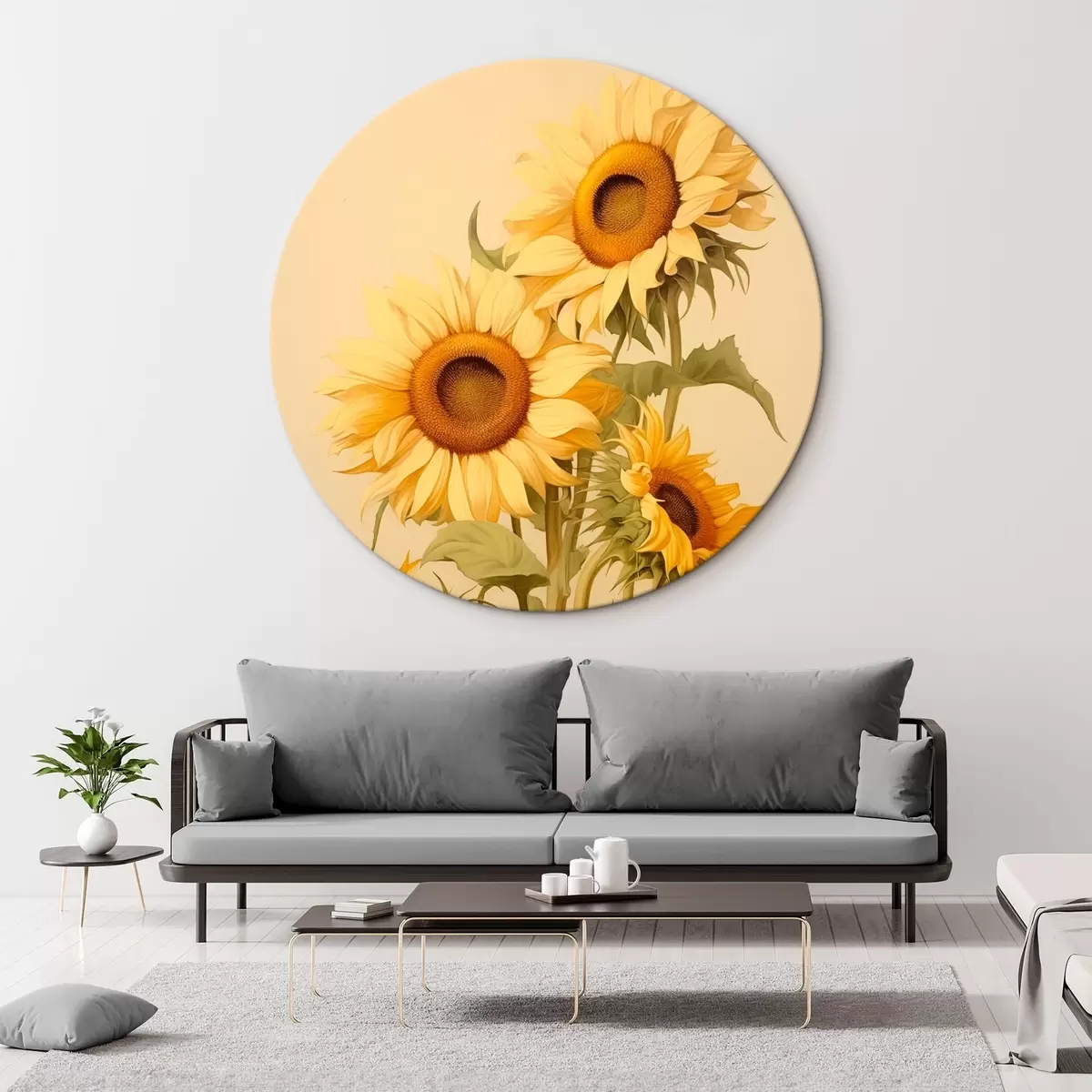 Okrągły obraz Słoneczniki w promieniach słońca Nr r42155