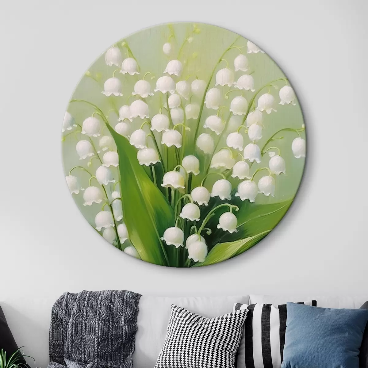 Okrągły obraz Konwalie na delikatnym zielonym tle Nr r42160