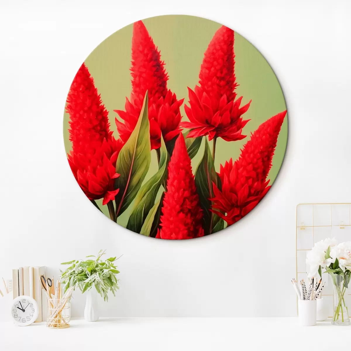 Okrągły obraz Czerwone kwiaty na zielonym tle Nr r42166
