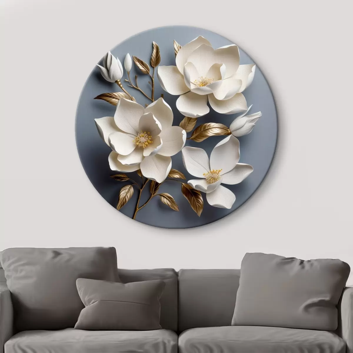 Okrągły obraz Duże kwiaty na jasnoszarym tle Nr r42174