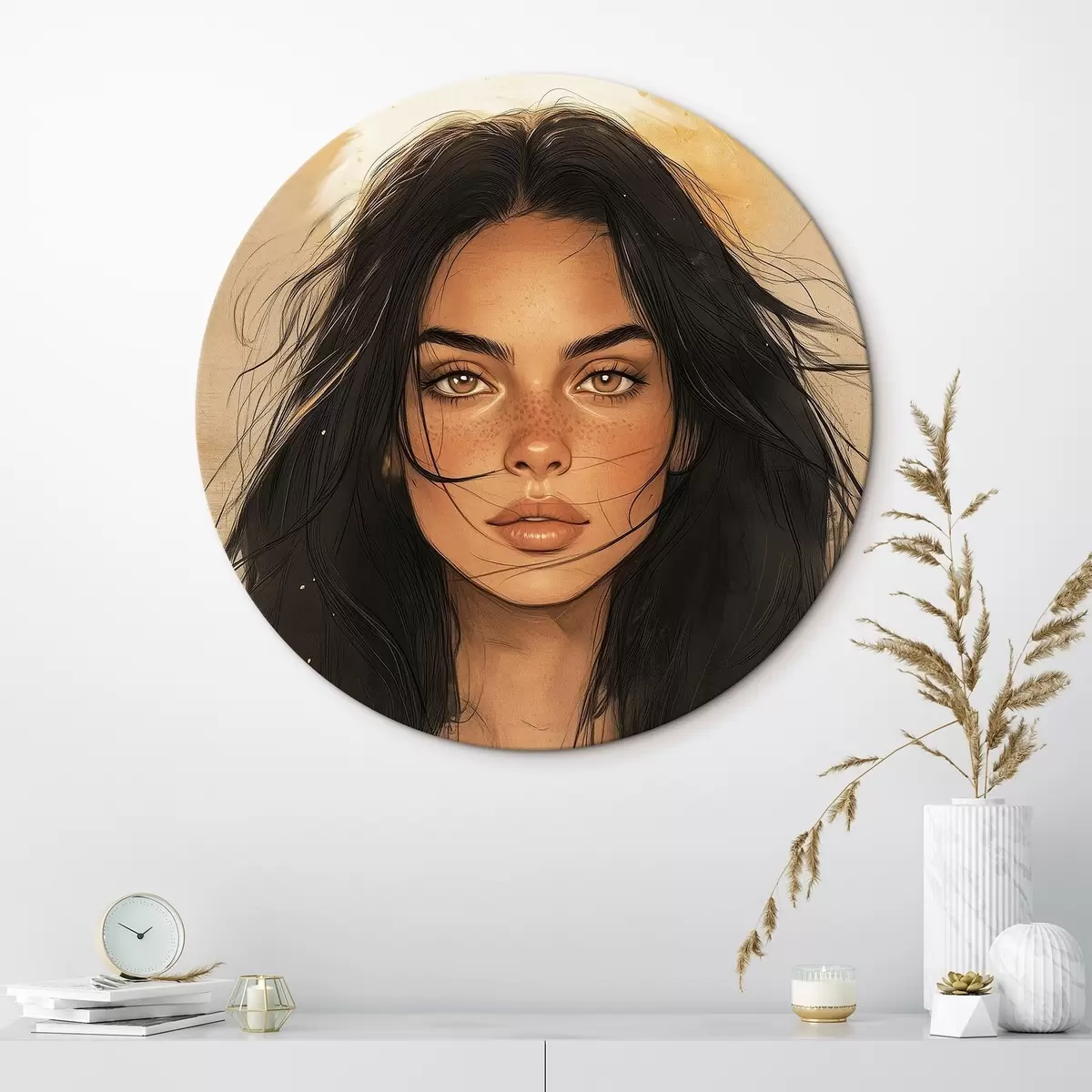 Okrągły obraz Portret kobiety, styl plemienny, beżowe kolory Nr r42197