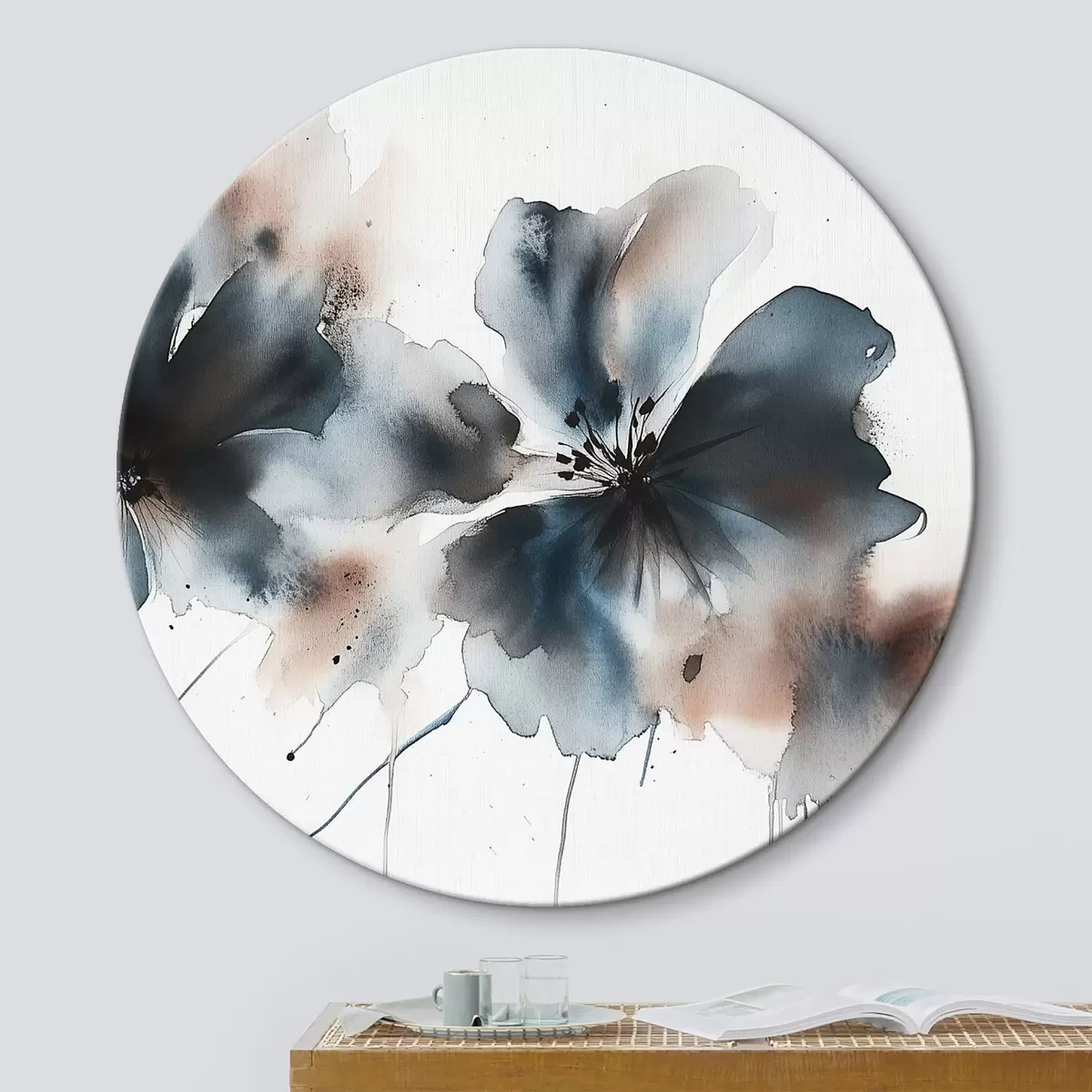 Okrągły obraz Kwiaty w stylu akwareli, niebieskie kolory Nr r42208