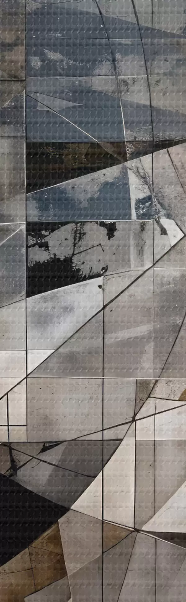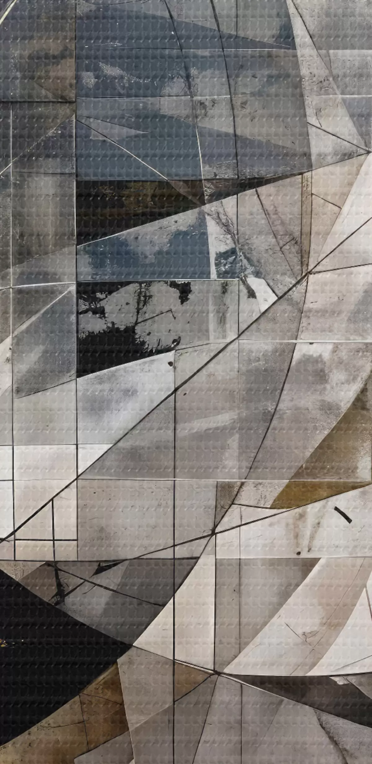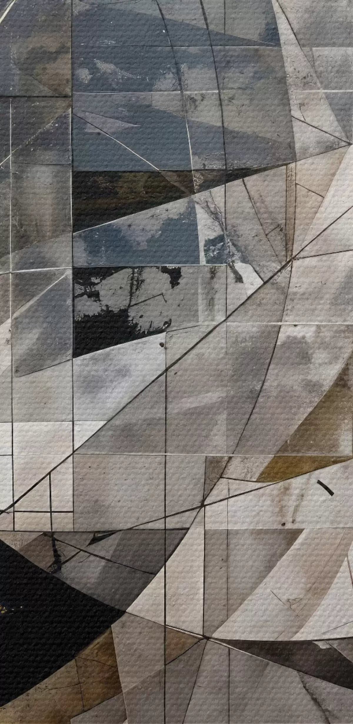 Okrągły obraz Abstrakcyjna, nowoczesna kompozycja geometryczna z nakładającymi się kształtami i nadrukiem w odcieniach szarości, czerni i beżu Nr r42212