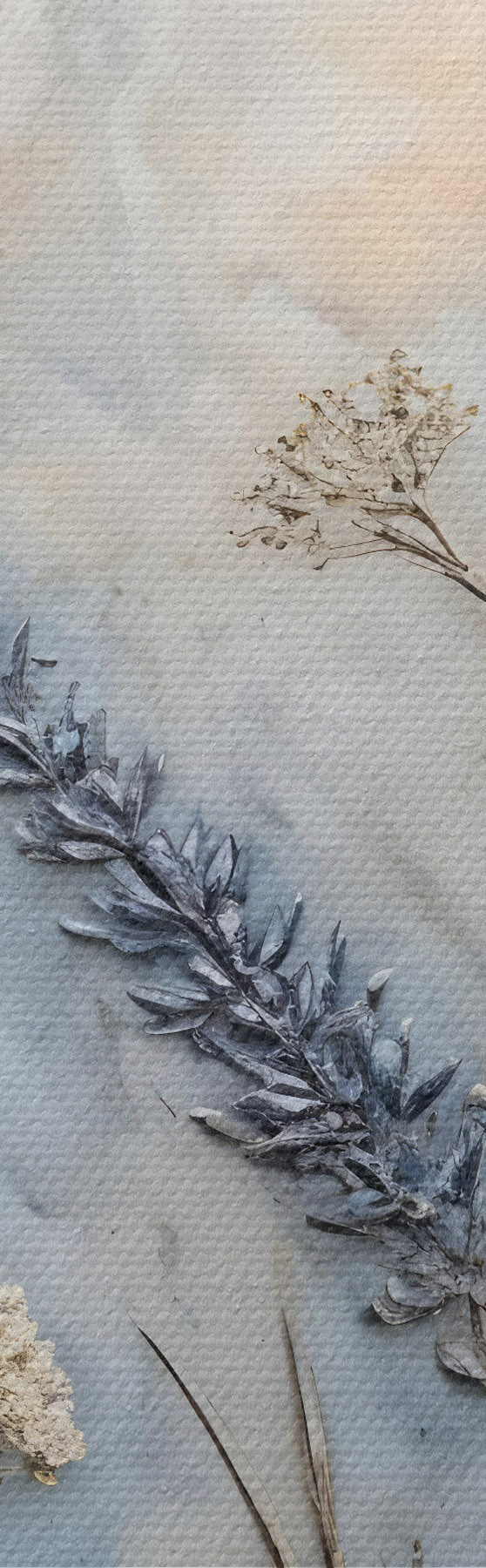 Okrągły obraz Pole różnych polnych kwiatów i roślin w odcieniach niebieskiego, białego i beżowego na miękkim, zamglonym tle Nr r42214