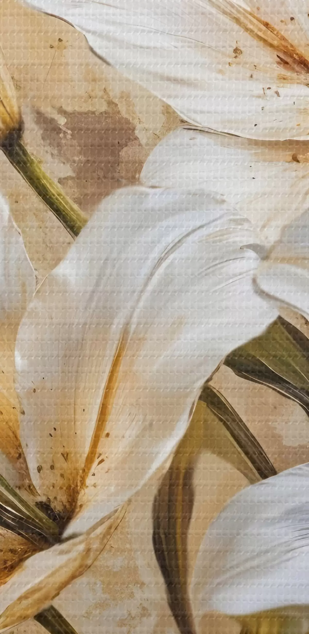 Okrągły obraz Białe lilie z żółtymi środkami na teksturowanym beżowym tle Nr r42216