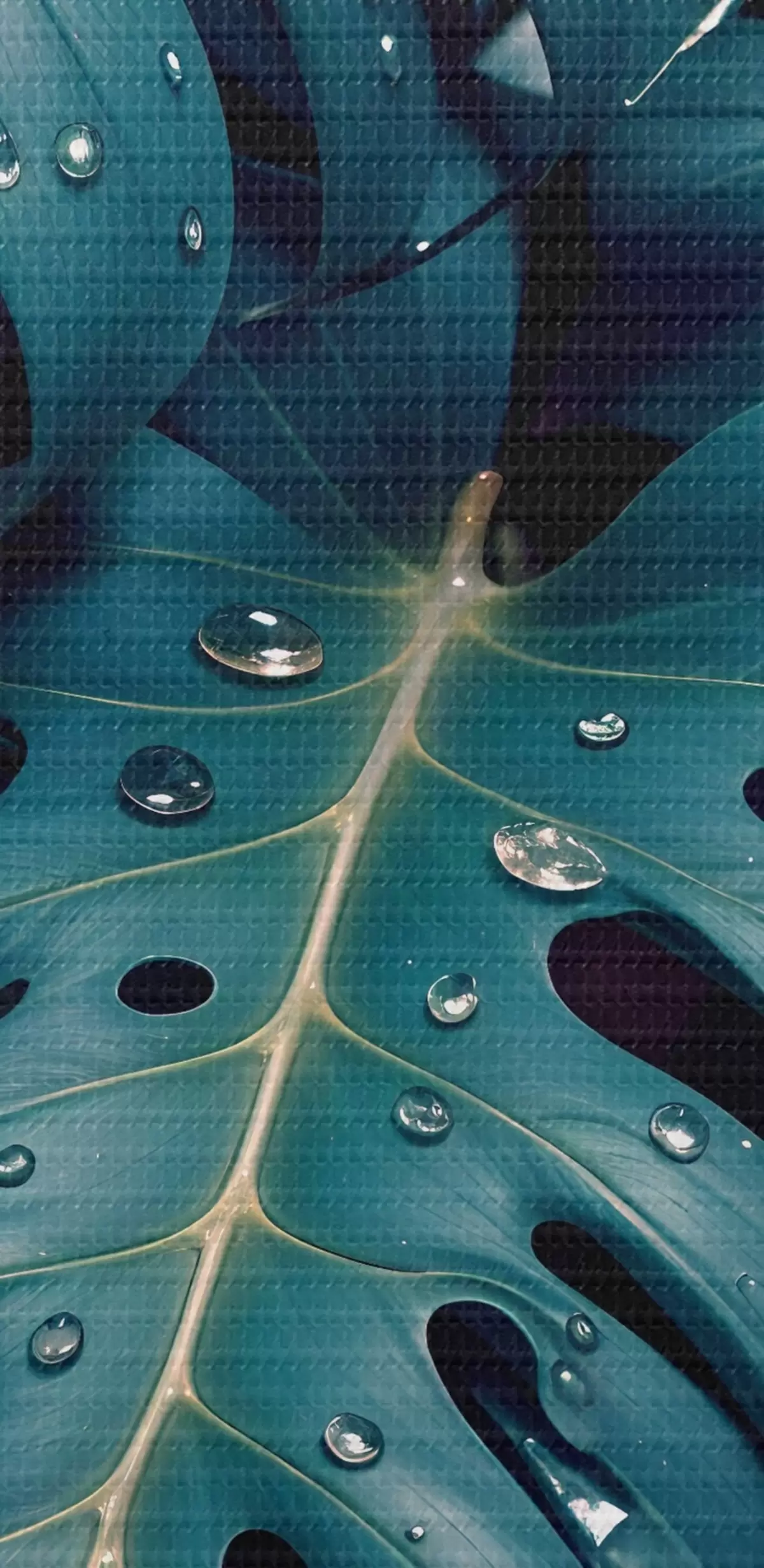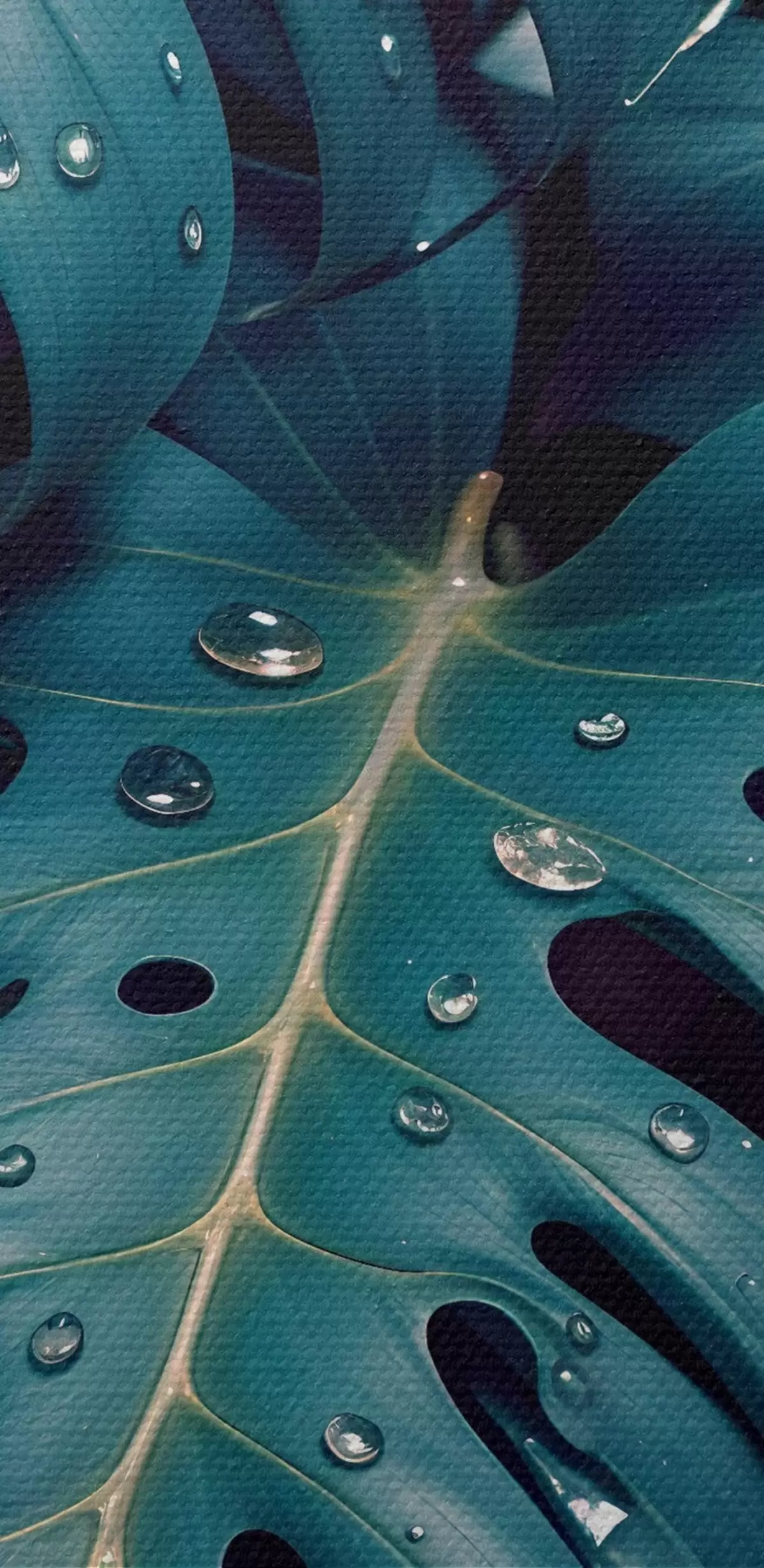 Okrągły obraz Bujne tropikalne liście monstery z kroplami wody na ciemnym tle, tworzące nastrojowy i klimatyczny nadruk Nr r42233