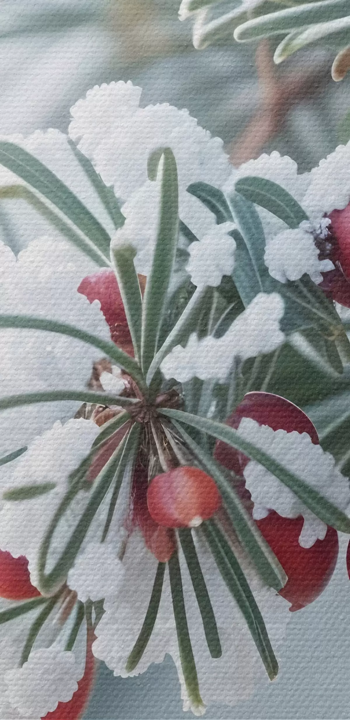 Drobny splot nici na tym płótnie przypomina powierzchnię profesjonalnych płócien artystycznych.