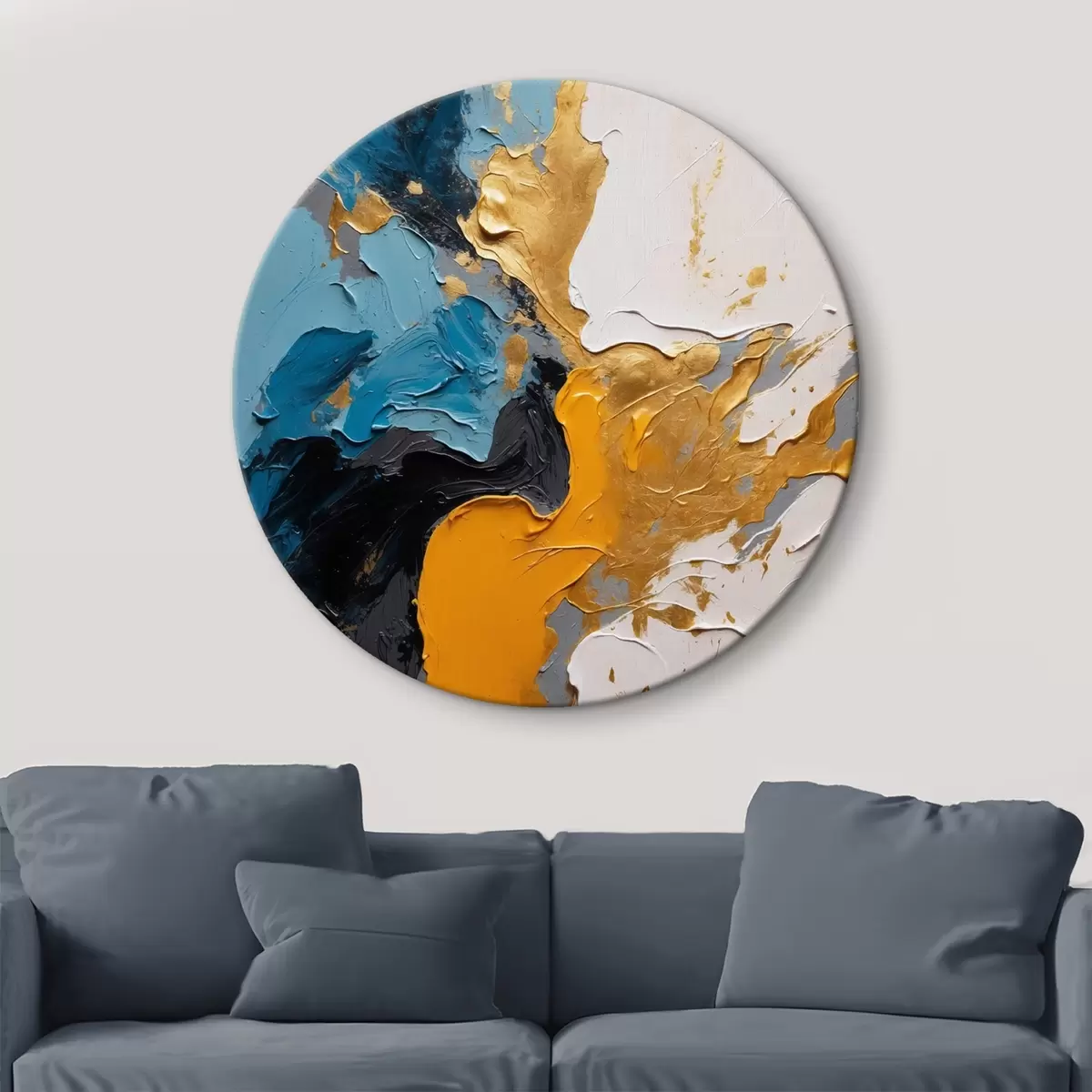 Okrągły obraz Abstrakcyjny obraz z niebieskimi, białymi i żółtymi kolorami Nr r42254