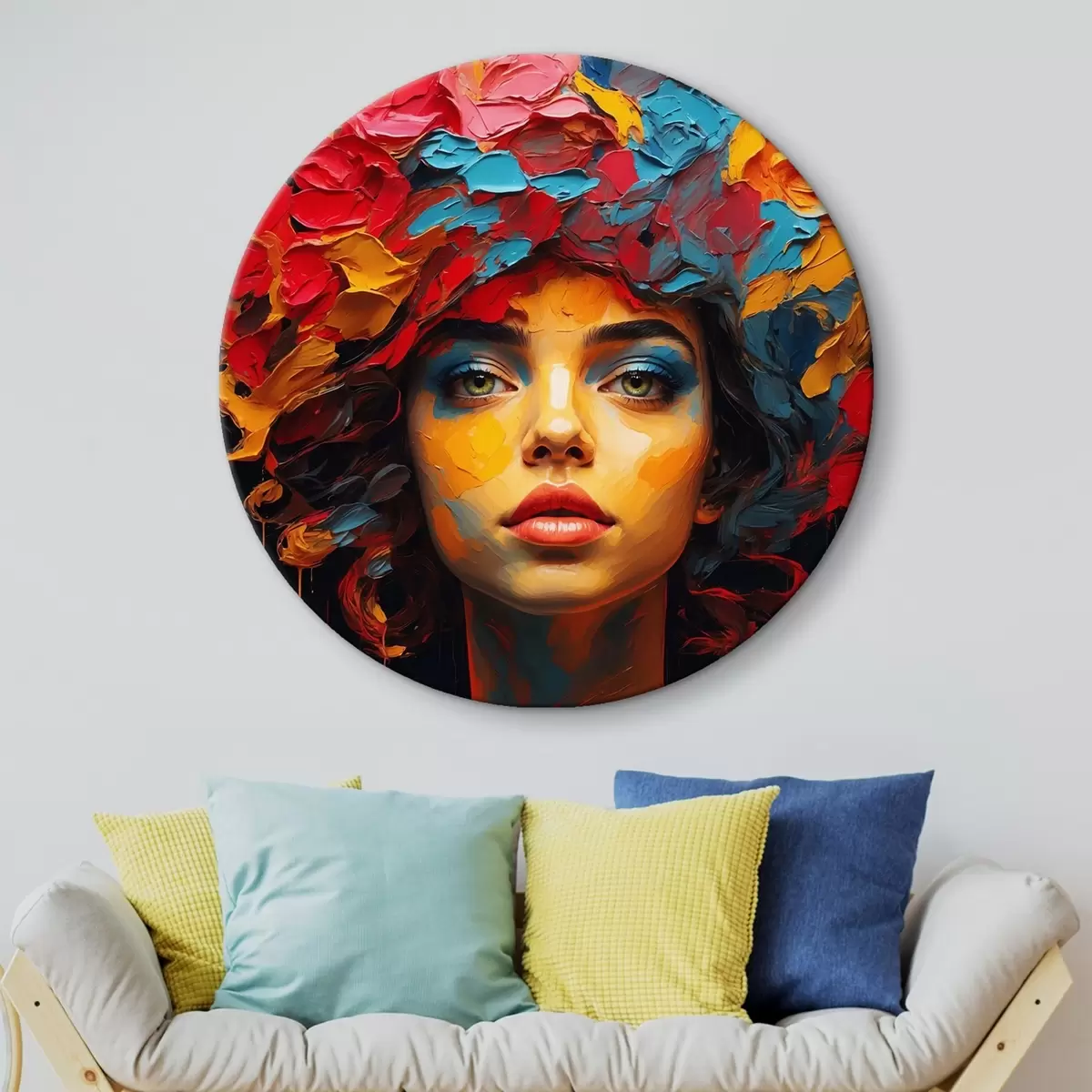 Okrągły obraz Dziewczyna z kwiatami na głowie w stylu malarstwa olejnego Nr r42271