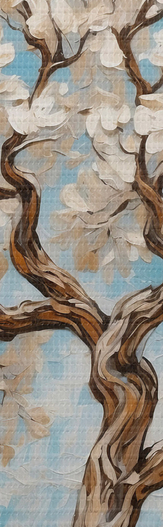 Okrągły obraz Białe drzewo na niebiesko-białym tle Nr r42275
