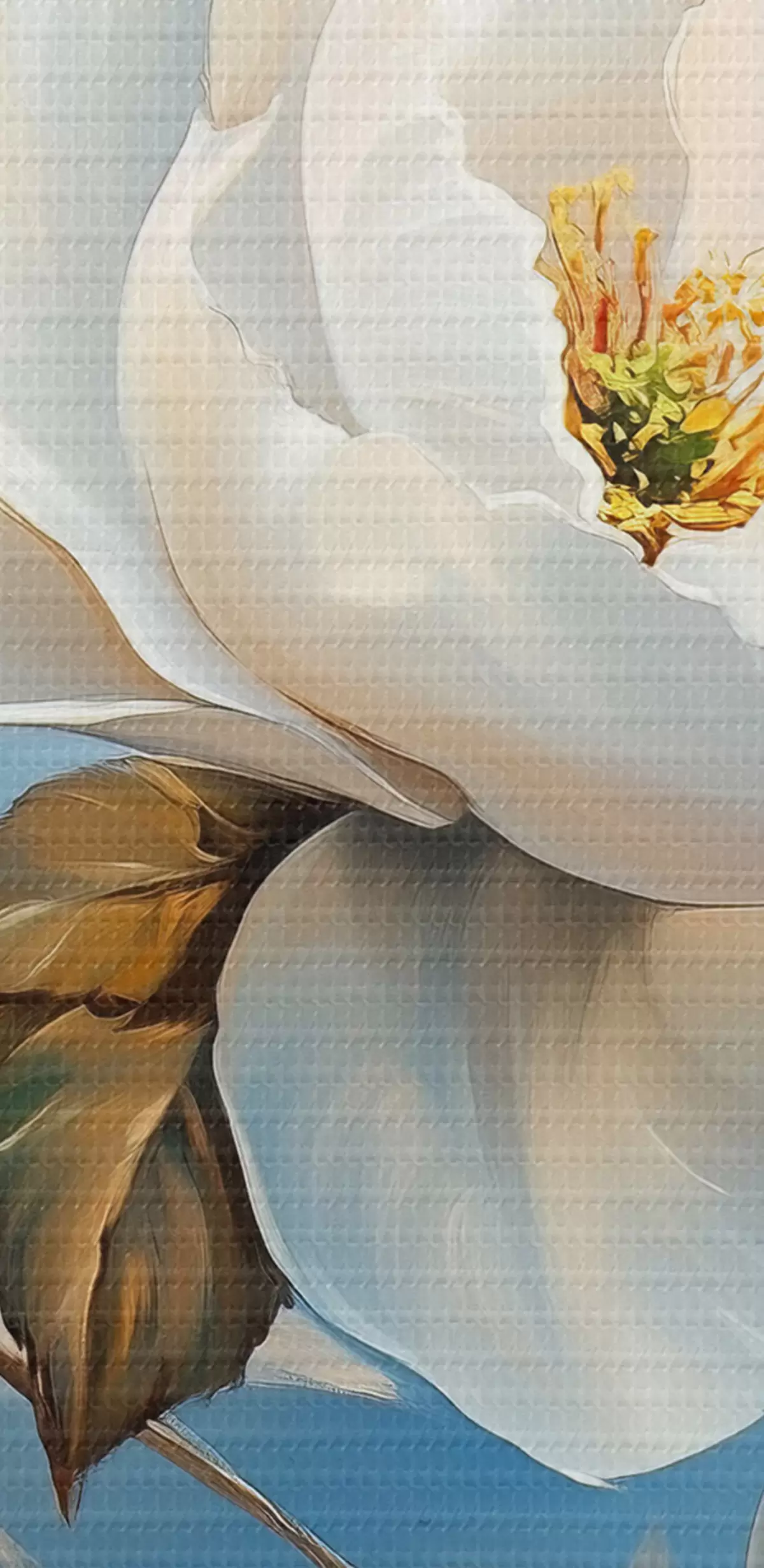 Drobny splot nici na tym płótnie przypomina powierzchnię profesjonalnych płócien artystycznych.