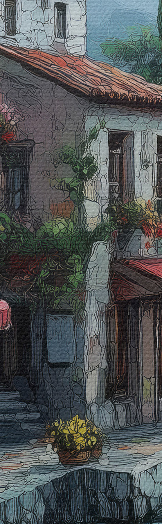 Drobny splot nici na tym płótnie przypomina powierzchnię profesjonalnych płócien artystycznych.