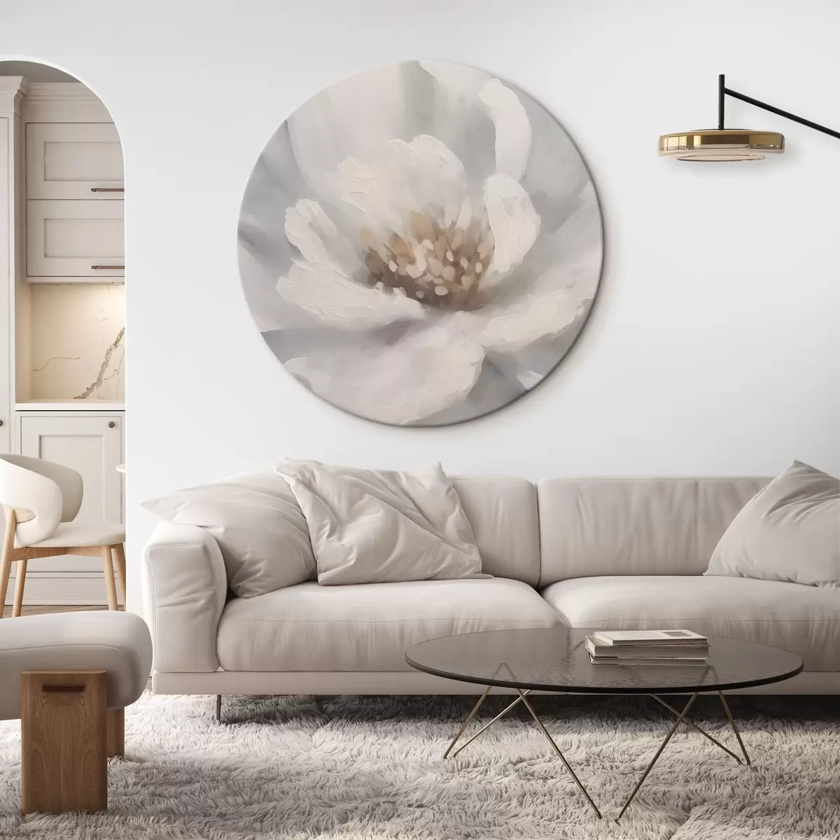 Okrągły obraz Biała piwonia Nr r42338