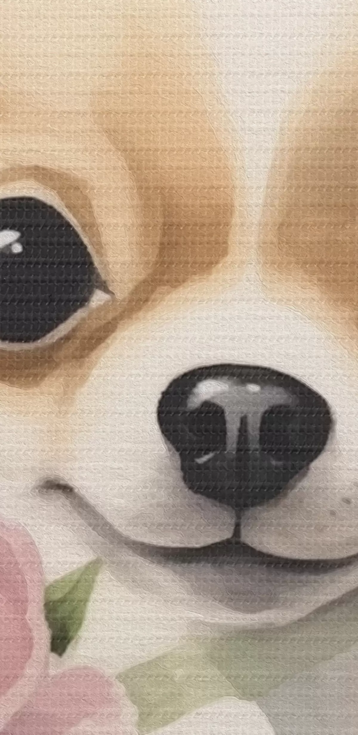 Drobny splot nici na tym płótnie przypomina powierzchnię profesjonalnych płócien artystycznych.