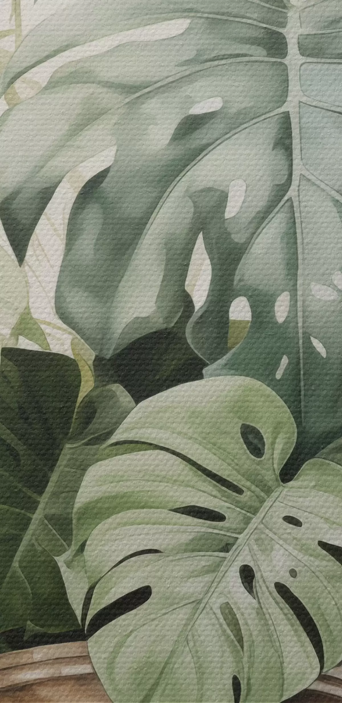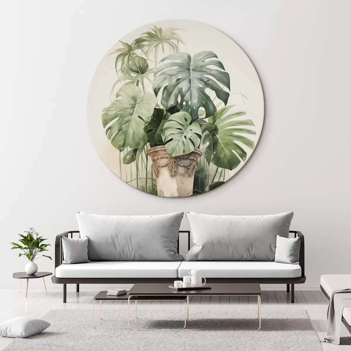 Okrągłe obrazy Tropikalne liście monstery na kolumnie imitacja akwareli r42351