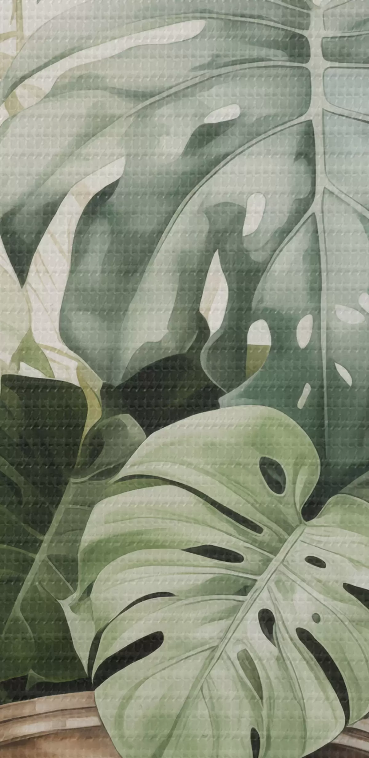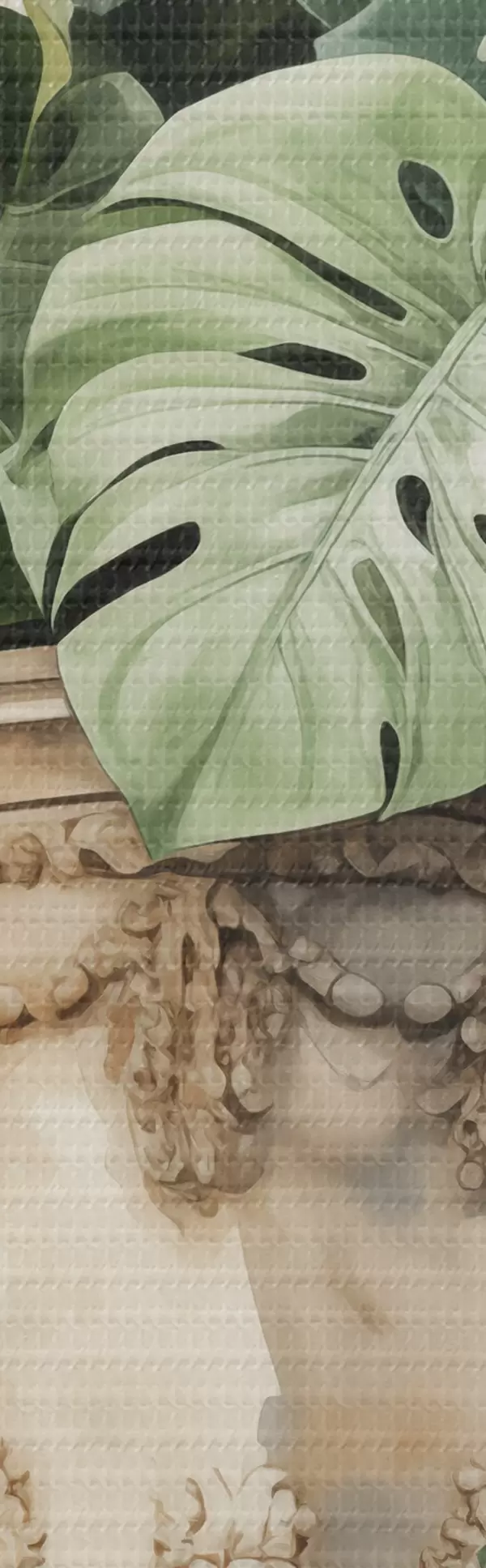 Okrągły obraz Tropikalne liście monstery na kolumnie imitacja akwareli Nr r42351