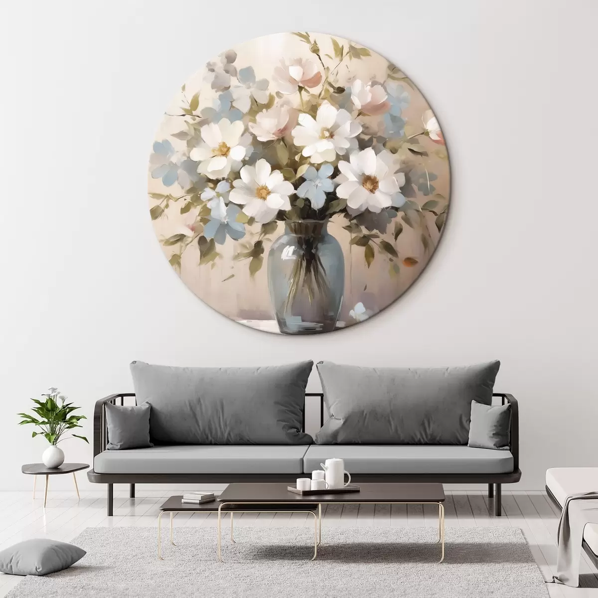 Okrągłe obrazy Bukiet kwiatów i gałązek w wazonie imitującym obraz r42356